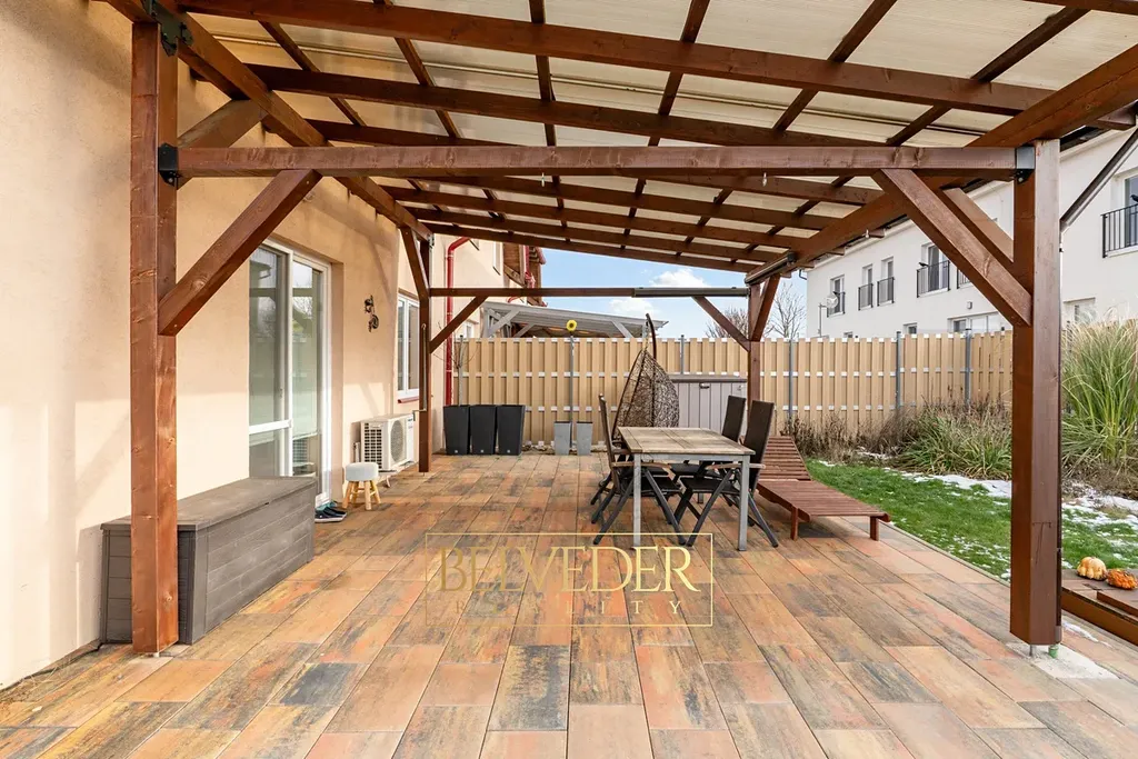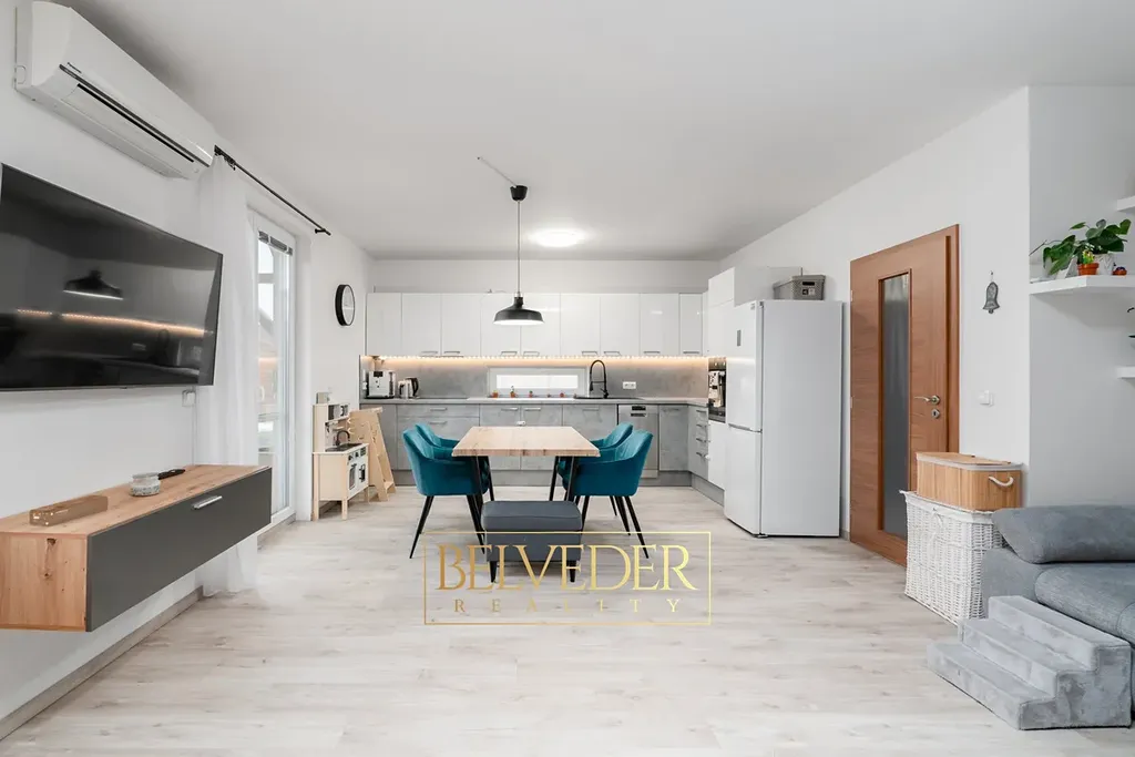 Byt má charakter řadového domku a je součástí menší novostavby se šesti bytovými jednotkami, což vytváří příjemné sousedské prostředí a klid pro každodenní rodinný život. Nabízí ideální kombinaci pohodlí rodinného domu a praktičnosti bytu – vlastní zahradu s pergolou, minimální nároky na údržbu a nízké provozní náklady, které potěší rodinný rozpočet.