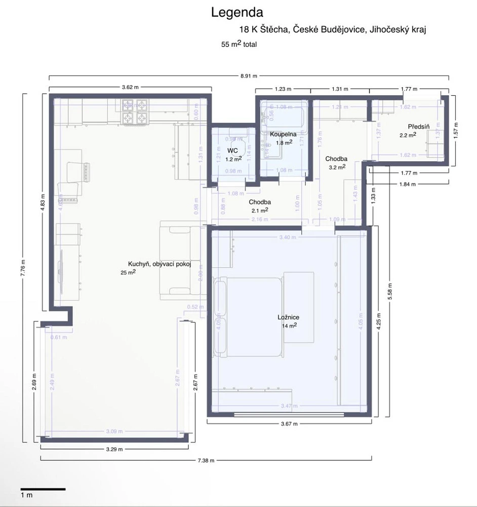 Vytápění i ohřev teplé vody jsou řešeny dálkově, což zajišťuje pohodlí a nízké provozní náklady.
