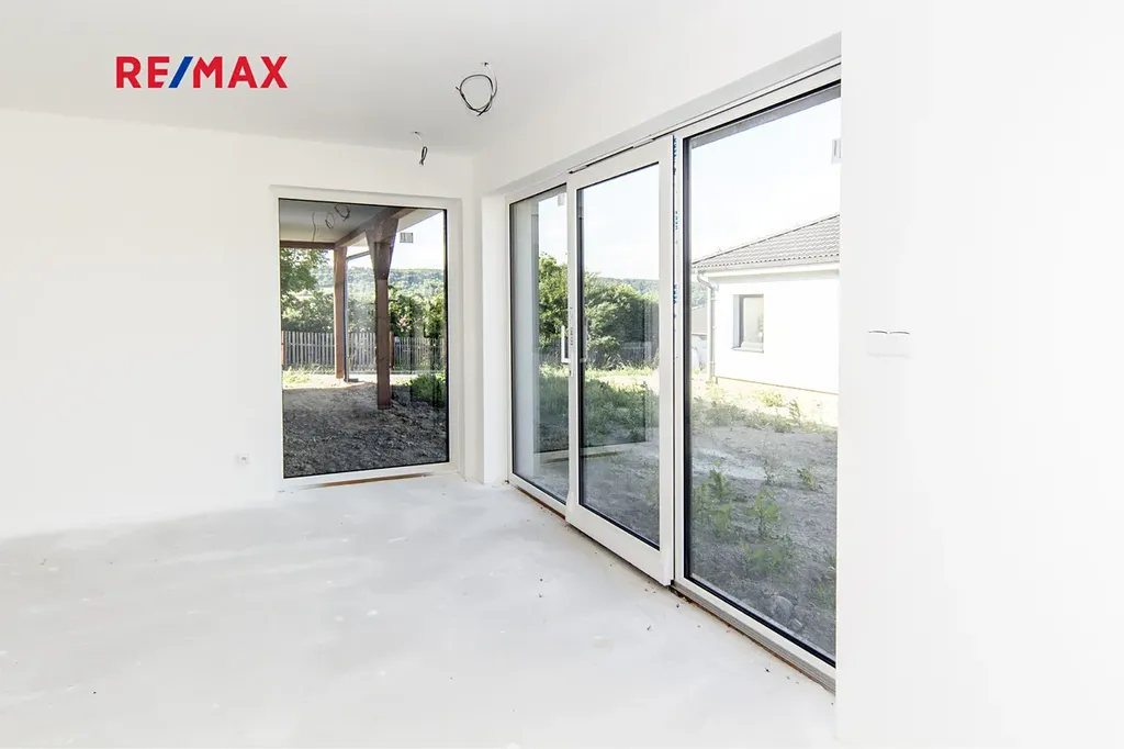 Jedná se o ekonomicky úspornou novostavbu jednopodlažního bungalovu navrženou tak, aby splňovala současné nároky na moderní domov. Tak je koncipován i interiér s dispozicí 4+kk. U vchodu do budovy se nachází technická místnost pro obsluhu tepelného čerpadla, dále jsou umístěny 3 ložnice, 2 z nich mají vlastní šatnu, z chodby je dále vstup do koupelny s WC a do dalšího, samostatného WC. V čele chodby vstoupíme do prostorného, světlého obývacího pokoje s přípravou na kuchyňský kout. Zde jsou francouzská okna do zahrady.