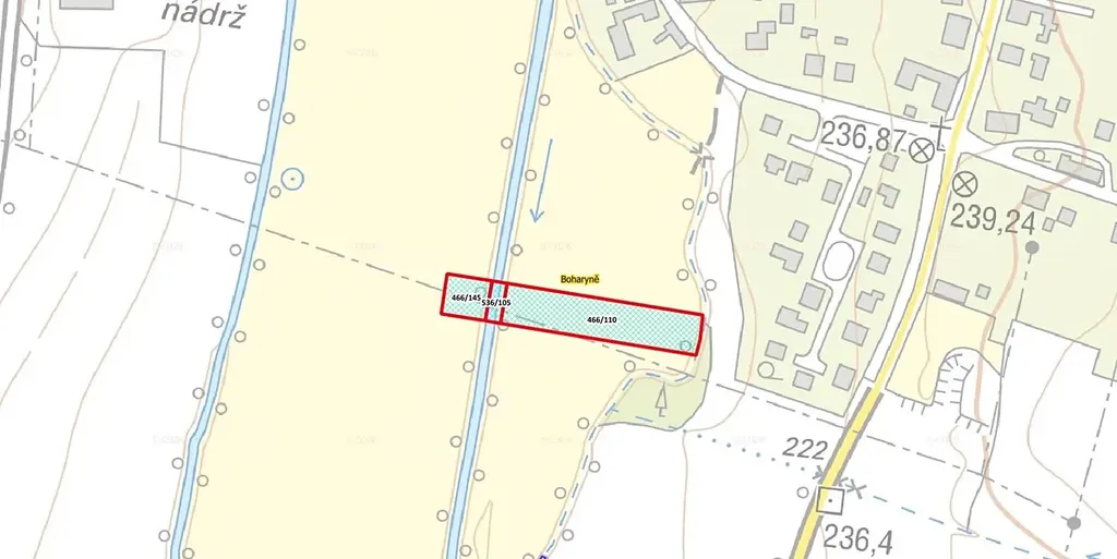 Nabízíme k prodeji atraktivní pozemek o výměře 4.624m v katastrálním území Boharyně. Pozemek je ve výhradním vlastnictví, nachází se v klidné části katastru a vybízí k umístění včelstev, zřízení pastviny nebo vybudování sadu. U pozemků také protéká Bystřice, takže je zde přístup k vodě Dle územního plánu není určeno hlavní využití a v současné době zde není povolena výstavba pro bydlení. Ohrazení pozemku za účelem pastviny je v pořádku. Louka je v současné době obhospodařovaná místním zemědělským subjektem na základě pachtovní smlouvy. Nepropásněte proto příležitost ke koupi pozemku v tomto katastru.