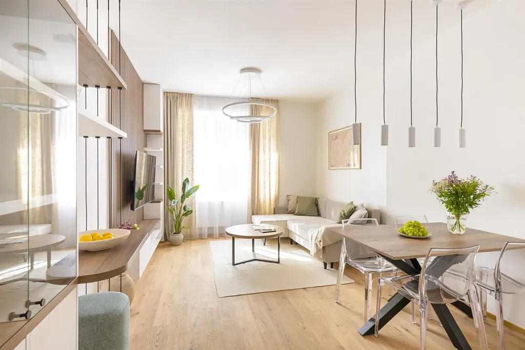 Byt je dokončen do standardu „fit out“, tedy k nastěhování – včetně finálních povrchů, sanitárního vybavení a přípravy pro instalaci kuchyňské linky. Nechybí dřevěné podlahy, nová okna a moderní koupelna.