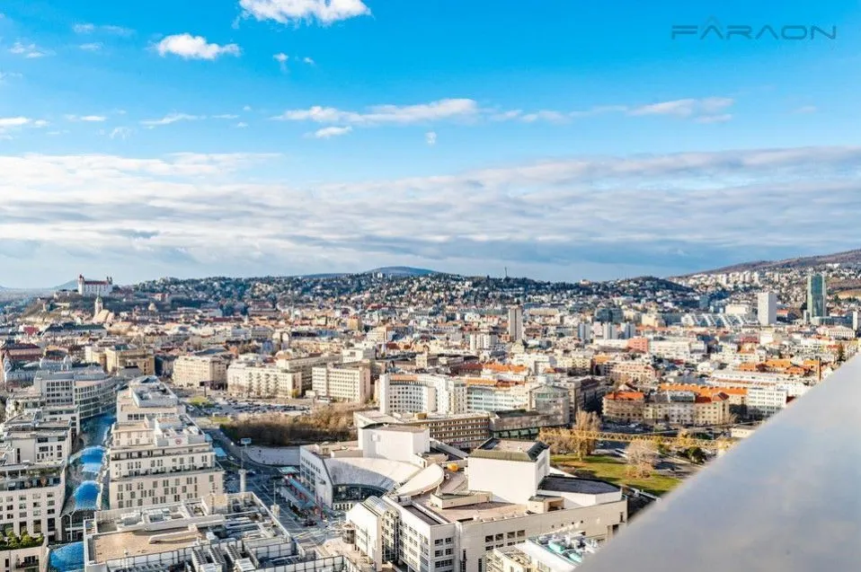 Exkluzivní, slunný byt 2+kk s terasou na unikátním 28. patře v luxusním projektu EUROVEA, který představuje špičku luxusního bydlení v Bratislavě. Byt nabízí mimořádné, okouzlující a neopakovatelné panoramatické výhledy na město, most a řeku Dunaj. Rezidenční komplex poskytuje bezpečné prostředí s recepcí a elegantní lobby, nízké provozní náklady a vlastní parkovací místo v suterénu. Součástí bytu je suchý přechod do obchodního centra EUROVEA, který zaručuje okamžitý přístup ke všem službám, restauracím, kavárnám, fitness a wellness centrům. Vzhledem k silné a stabilní poptávce po pronájmu v prestižním centru Bratislavy představuje tato nemovitost mimořádnou investiční příležitost.
