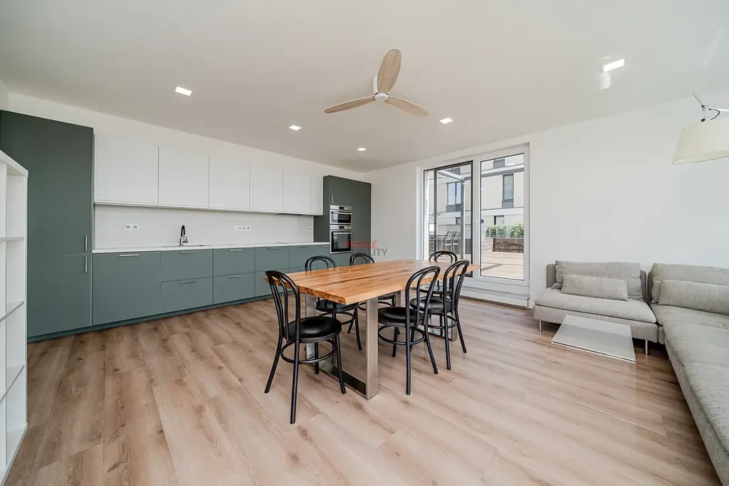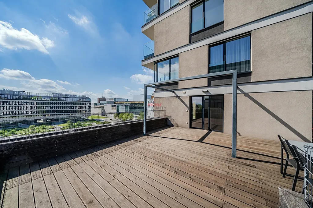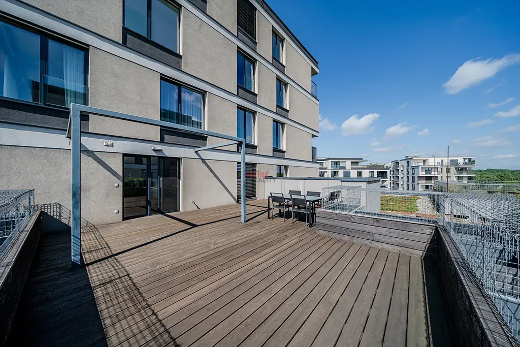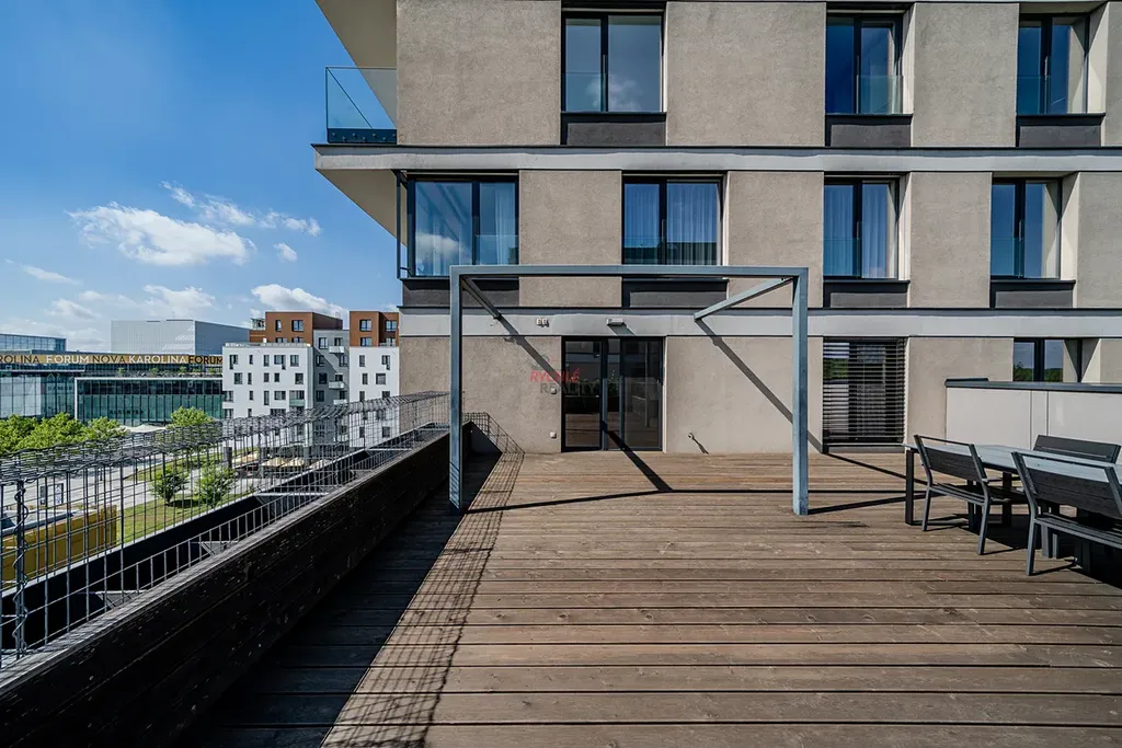 Nabízíme tento světlý, vzdušný a prostorný byt o dispozici 3+kk na nám. Biskupa Bruna v klidné části Rezidence Nová Karolina. Byt (103 m2) disponuje terasou (53 m2) a lodžií (5 m2), rohovým garážovým parkovacím stáním (27 m2), kde je možno parkovat až 2 auta a dvěma úložnými kójemi, které s parkovacím stáním sousedí.