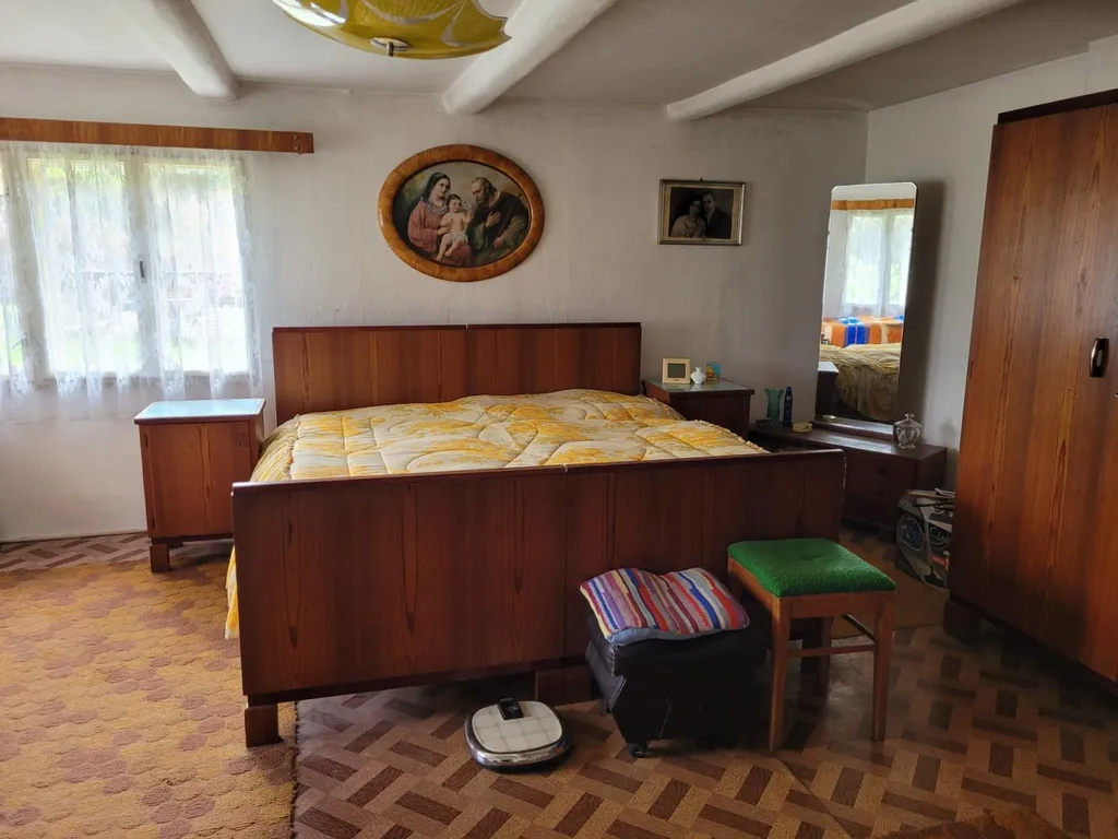 Chalupa nabízí 4 místnosti, koupelnu a WC. Odpady jsou svedeny do jímky, plyn a voda zavedeny do domu.