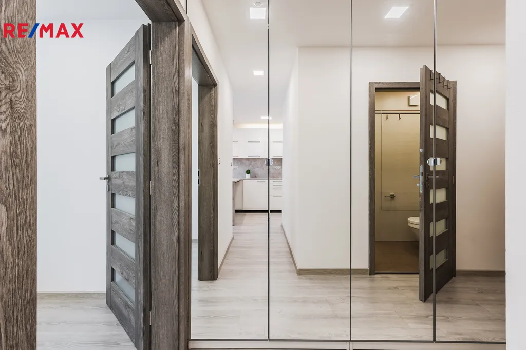 Byt prošel kompletní rekonstrukcí a je částečně vybavený, což novému majiteli umožňuje okamžité užívání nebo snadné doladění interiéru podle vlastního vkusu. Má inteligentní rozvody, je hlukově odizolován a je vybaven venkovními roletami Lomax. Vinylové podlahy Tarco Clic jsou všude s výjimkou koupelny. V bytě je nainstalováno zabezpečovací zařízení. Velkým benefitem je sklep o velikosti 4,5 m² a možnost parkování v krytém garážovém stání.