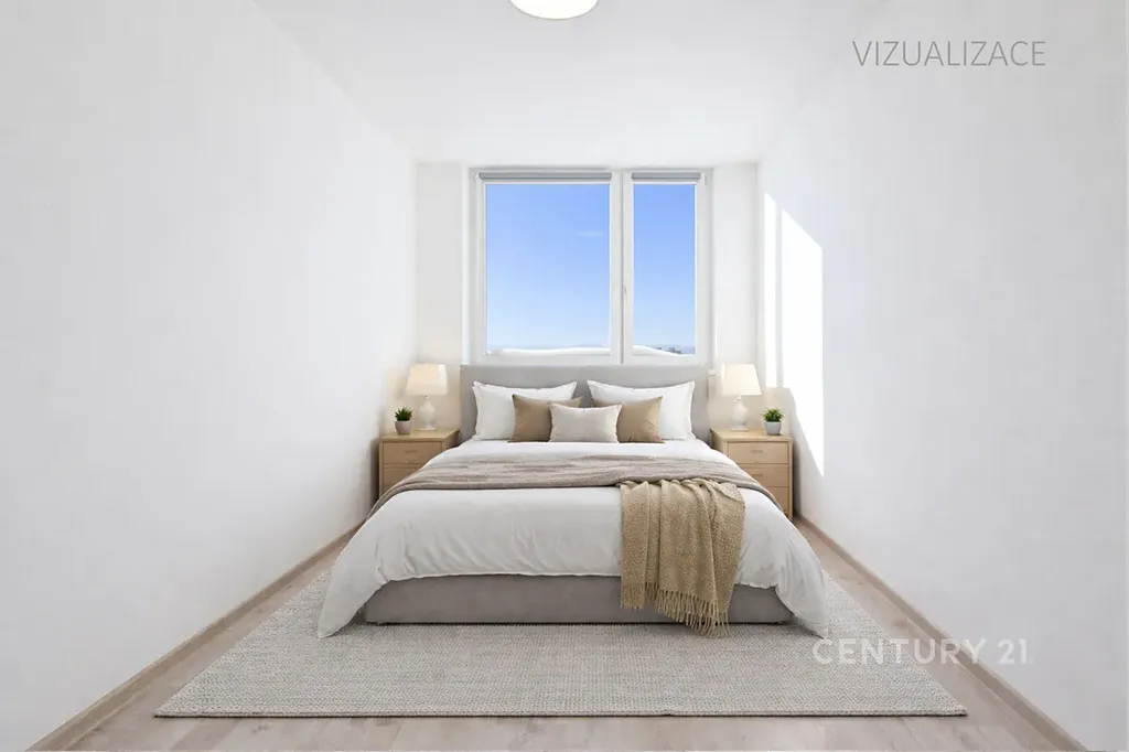 V celém bytě jsou nové dveře, osvětlení a položeny plovoucí podlahy. V oknech jsou rolety (den/noc). Obývací prostor a ložnice jsou na fotografiích vizualizovány.