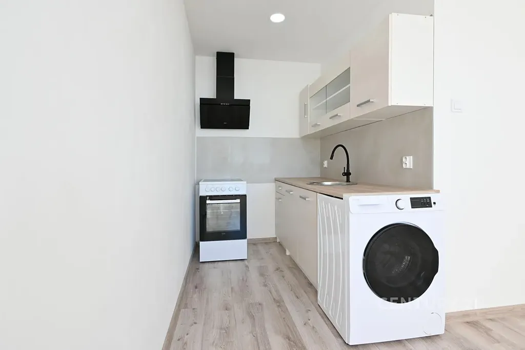 Ráda bych vám nabídla k podnájmu krásný byt po celkové rekonstrukci 2+kk o výměře 40 m² v ulici Bohuslava Vrbenského v Mostě. Byt je nově zrekonstruován a nachází se v 7. patře panelového domu. Disponuje vstupní chodbou, odkud se vchází do koupelny se sprchovým koutem, toaletou a otopným žebříkem. Koupelna je obložena velkoformátovými dlaždicemi. Z chodby se dostaneme i do samostatného pokoje. Vedle této místnosti se nachází obývací prostor s kuchyňským koutem. Kuchyňská linka je vybavená elektrickým sporákem, digestoří a pračkou.