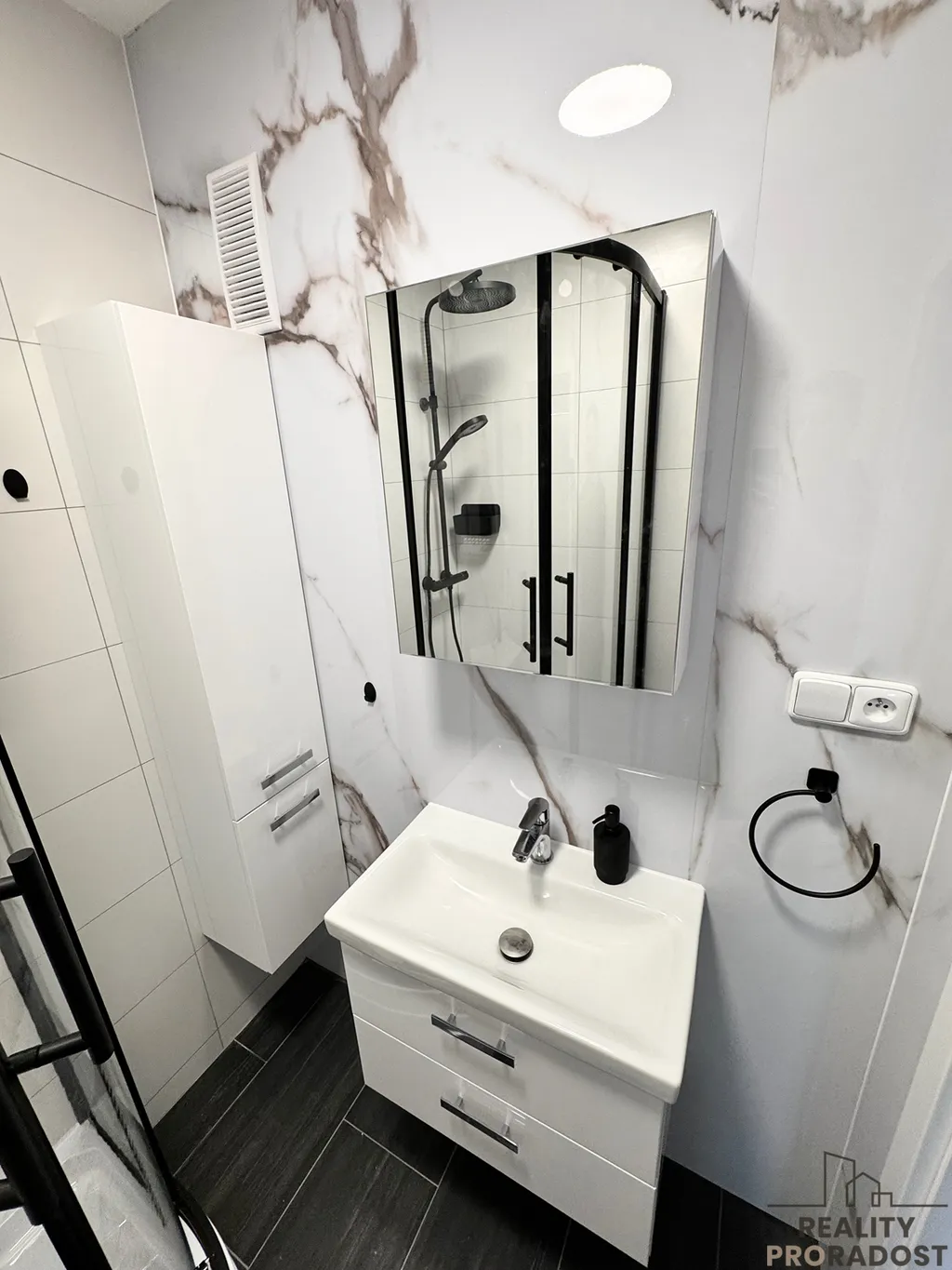 Určitě stojí za zmínění krásná moderní kuchyňská linka s ledničkou, myčkou, indukční deskou troubou a mikrovlnkou. Zhodnoťte z fotek sami!