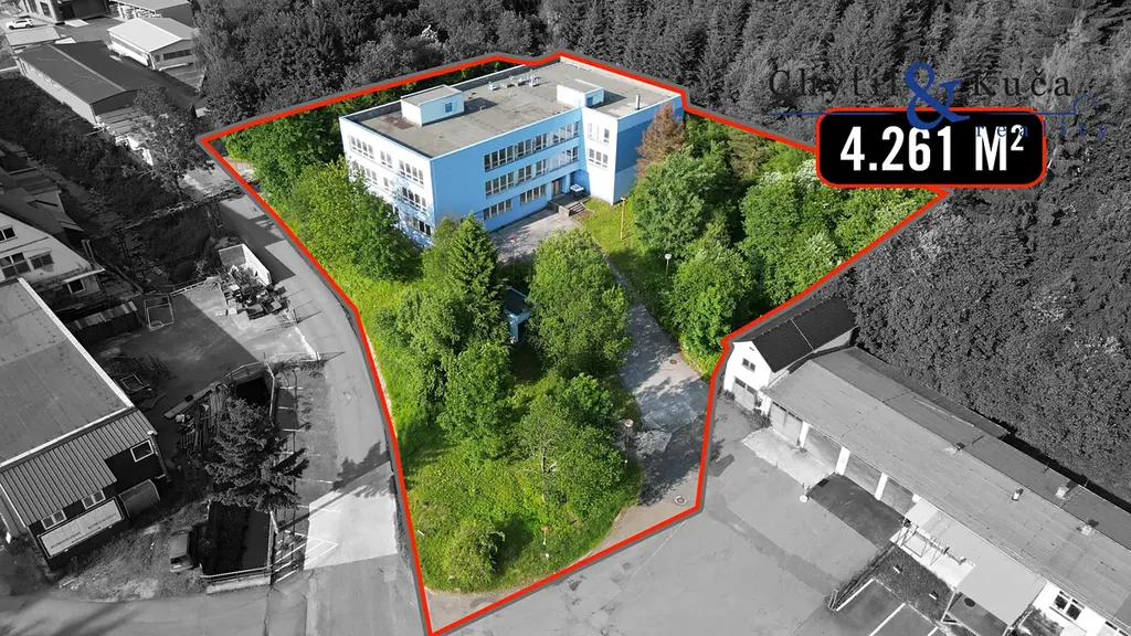 Realitní kancelář Chytil & Kuča reality Vám nabízí k prodeji betonový (železobetonový monolit) komerční objekt, který se nachází v bývalém areálu Zbrojovky, Vsetín-Jasenice. Dle územního plánu je daný objekt určen pro výrobu a skladování. Podlahová plocha objektu má výměru 2.156 m2. Pozemek včetně zastavěné plochy má výměru 5.819 m2. Objekt disponuje jedním patrem podzemním a třemi patry nadzemními. V prvním podzemním patře se nachází nevyužitý rozlehlí CO2 kryt o výměře 246 m2 s potenciálem. V prvním nadzemním patře se nachází zádveří, chodba, samostatné toalety včetně umývárny pro muže a ženy, dále trezorové místnosti, čistírna, radiomístnost, úklidová místnost, strojovna, dvě garáže a výrobní, skladovací prostor. Výměra podlahové plochy v prvním nadzemním patře činí 609 m2. Ve druhém nadzemním patře se nachází bývalá jídelna, toalety, úklidová místnost a šest prostorných kanceláří. Výměra podlahové plochy ve druhém nadzemním patře činí 641 m2. Ve třetím nadzemním patře se nachází šest skladových prostor, osm kancelářských prostor a toalety. Výměra podlahové plochy ve druhém nadzemním patře činí 661 m2. Daný objekt je připojen na dálkou vodu, obecní kanalizaci, elektřinu a optický kabel pro připojení k internetu. K objektu je plánována přípojka plynovodu. Pro více informací a pro případnou prohlídku dané nemovitosti neváhejte kontaktovat makléře.
