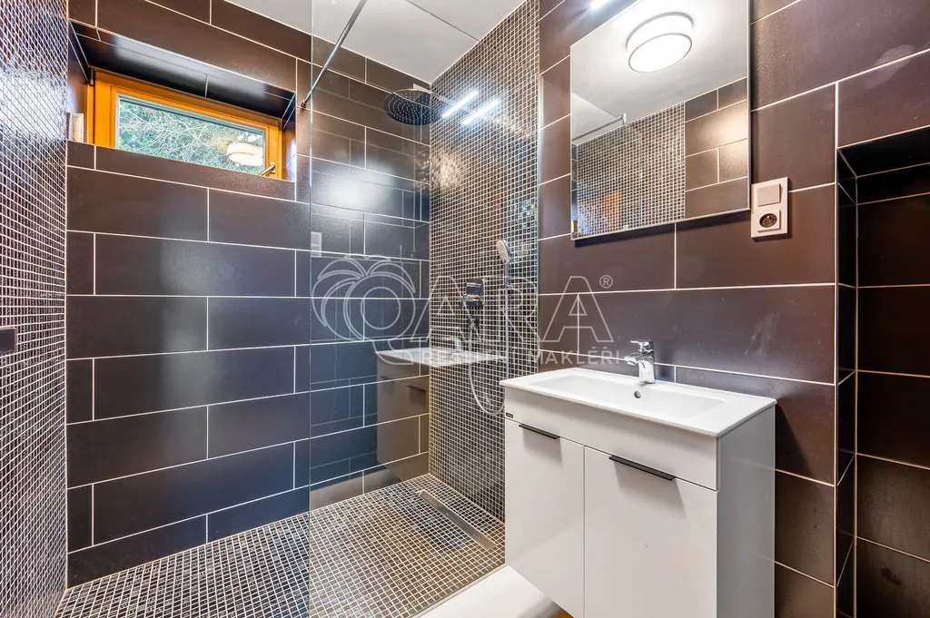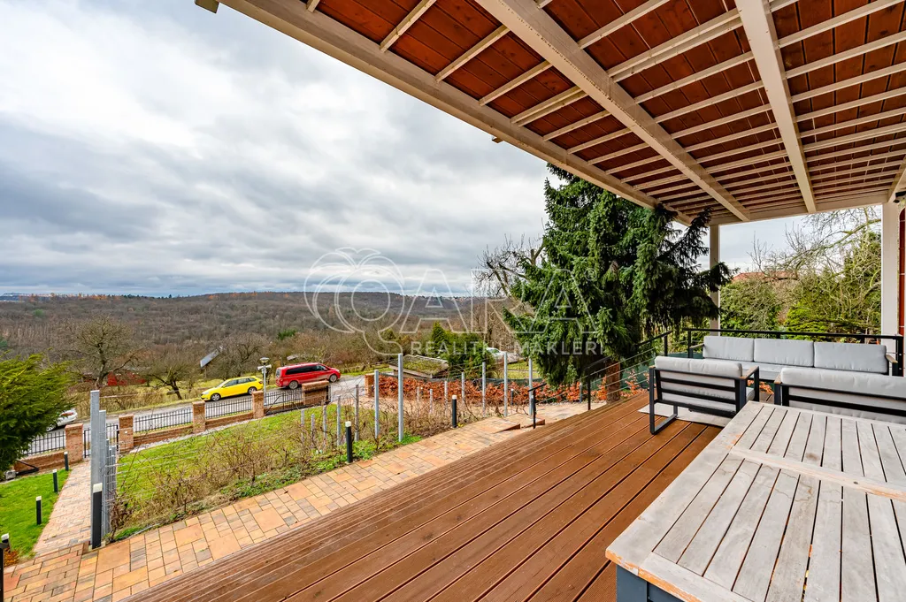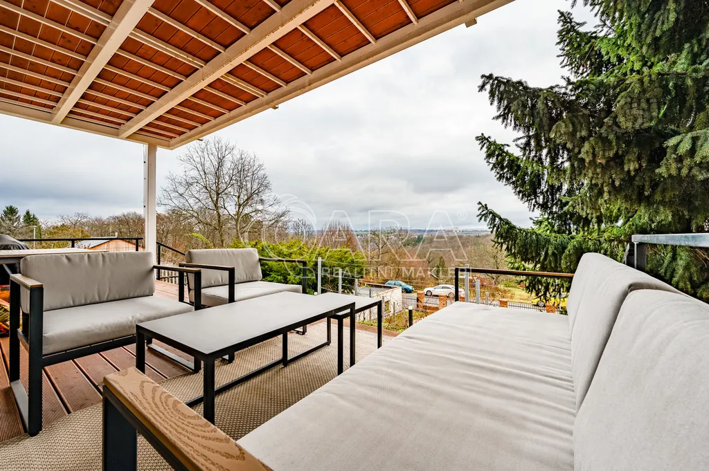 Vila disponuje prostorným přízemím, které nabízí elegantní kuchyň s obývacím pokojem a výstupem na jižní terasu, dále se zde nachází jeden pokoj, 2x šatna, 2x komora, koupelna a toaleta. V prvním patře najdete prostornou ložnici s terasou s nádherným výhledem, vlastní koupelnou se saunou. Další dva pokoje, koupelnu s vanou a sprchovým koutem a samostatnou toaletu. V suterénu domu je prádelna, dvě technické místnosti a sklad.