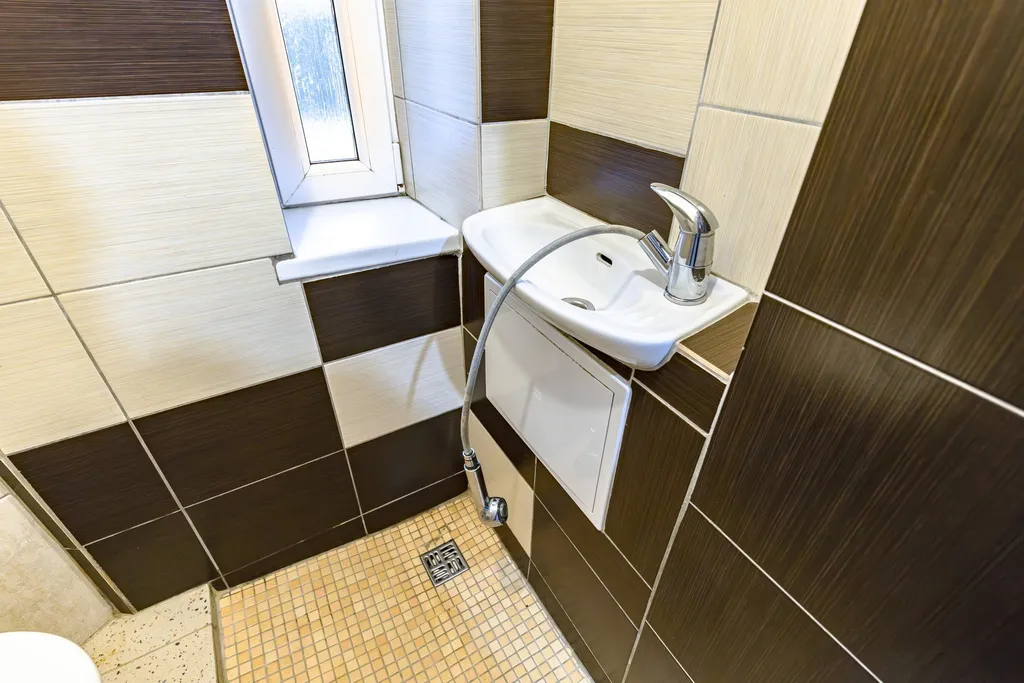 Drobnou nevýhodou je, že koupelnu má byt přes (uzavíratelnou) společnou chodbu, která vede ke sklepům, na druhou stranu je uzpůsobený tak, aby měl malou koupelničku i v obytné části.