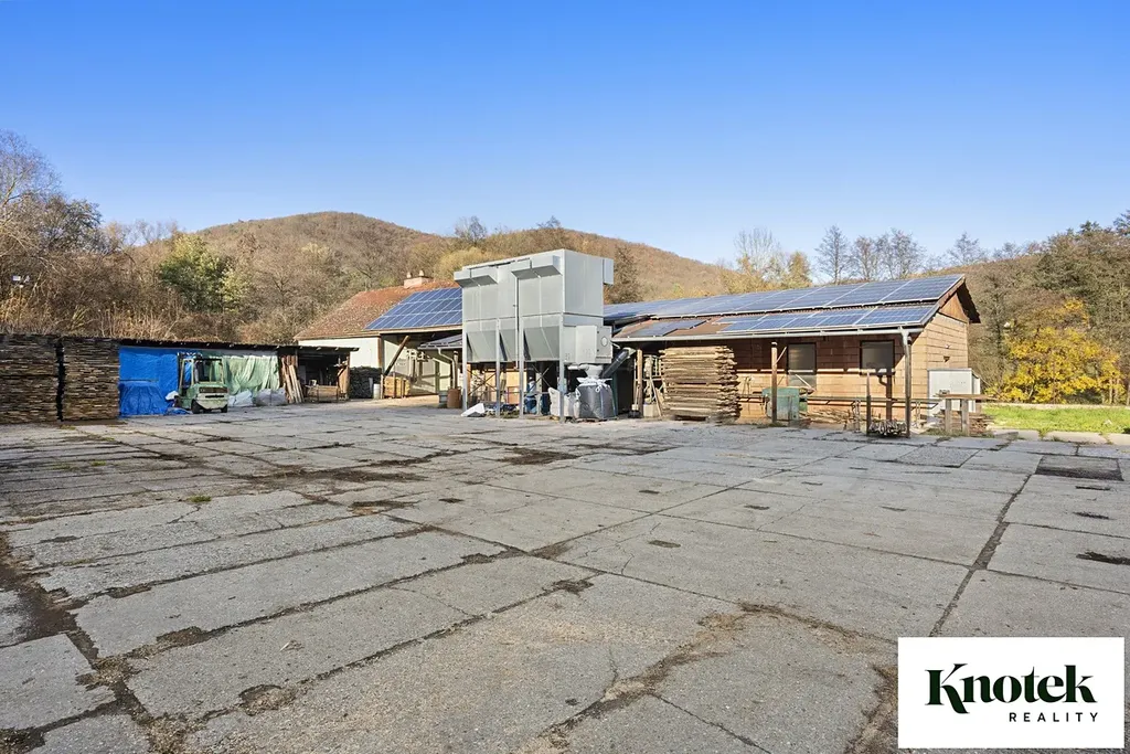Výměry: garáž 40,76 m2, sklad 1: 19,28 m2, sklad 2: 22,22 m2, klimatizovaný sklad 3: 12,13 m2, sušárna dřeva 37,69 m2, venkovní polootevřený sklad 99,85 m2.