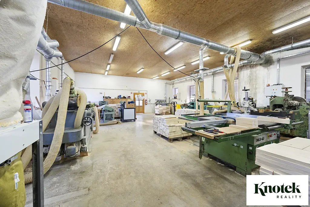 - SAMOSTATNÁ HALA s užitnou plochou 178,32 m2. Hala má samostatný vstup a také posuvná vrata s možností vjezdu nákladního auta (sv. v. 3,8 m). V současnosti je hala využívaná jako truhlářská dílna.