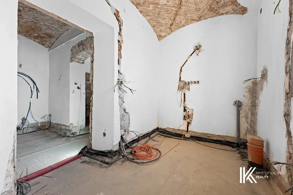 Na původní konstrukci domu byla zahájena rozsáhlá rekonstrukce. Hotové jsou nové krovy, střecha, štíty, betonové podlahy s hydroizolacemi, nová elektroinstalace s přípravou na fotovoltaiku či tepelné čerpadlo a dřevěná okna. Vnitřek čeká na dokončení novým majitelem, který si zvolí dispozici, technologie i finální podobu interiéru podle sebe.