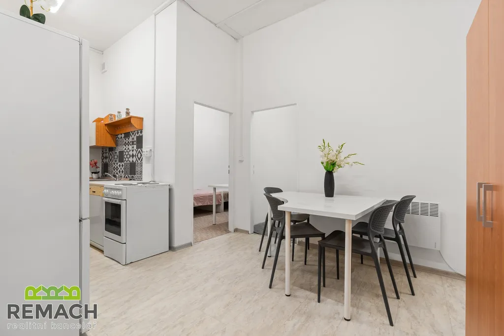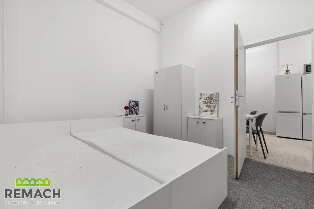 Zrekonstruovaný byt se čtyřmi neprůchozími pokoji a kuchyní s jídelním koutem. Kuchyně je vybavena myčkou, dvěma lednicemi, troubou a dvěma elektrickými vařiči. Kompletní vybavení pokojů: postele, šatní skříně a komody. Koupelna disponuje dvěma sprchovými kouty se dvěma umyvadly. Toaleta má dvě WC a umyvadlo. Vedle v budově se nachází obchod Hruška a pivnice. Parkovat je možno přímo u budovy.