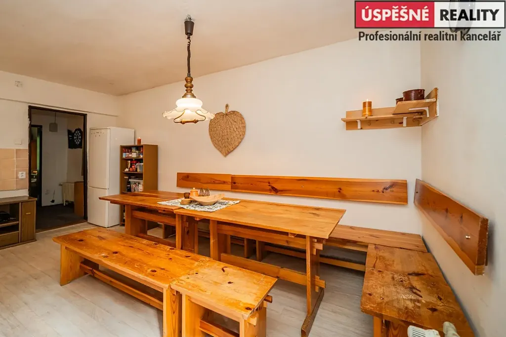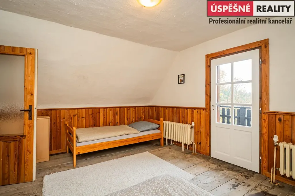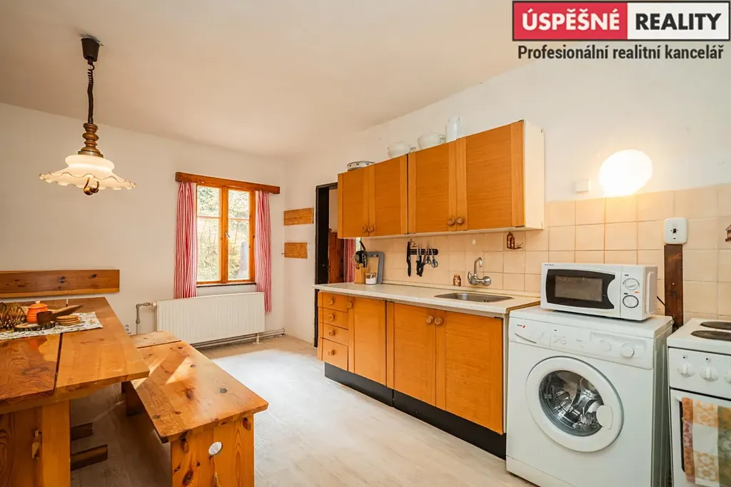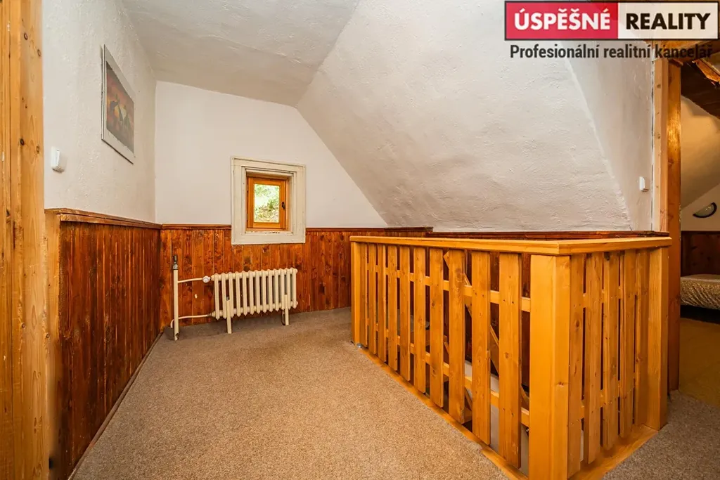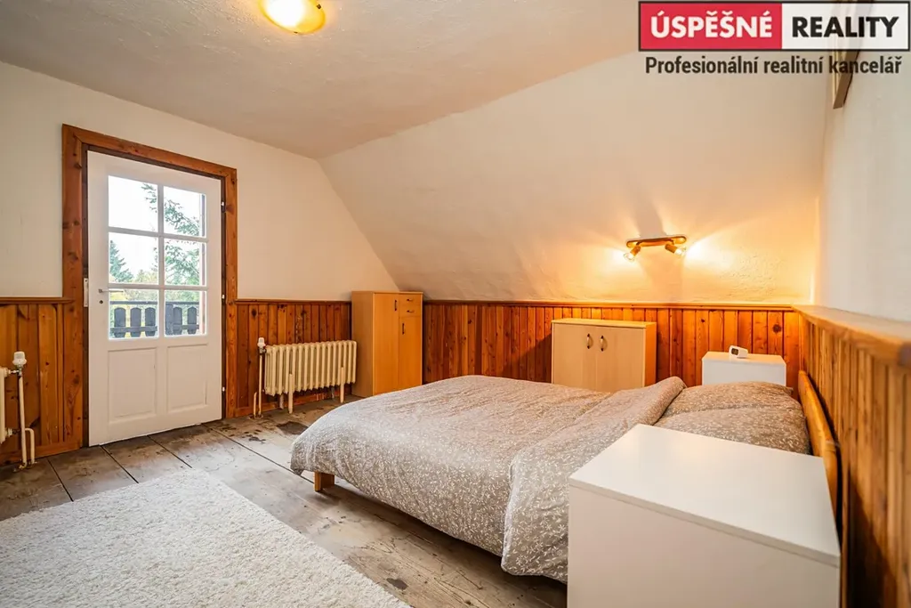 Hlavní komunikační prostor a srdce této nemovitosti tvoří velkoryse řešený obývací pokoj s krbovými kamny v přízemí, podkrovní část pak disponuje čtyřmi samostatnými ložnicemi. Vytápění objektu je zajištěno již zmíněnými krbovými kamny s výměníkem, v kombinaci s elektrokotlem na dálkové ovládání, voda je do něj přivedena z místního pramenu. Odpady jsou svedeny do septiku. Chata je situovaná na polosamotě a obklopená lesy a přírodou. Jednu z hranic pozemku lemuje malý potůček.