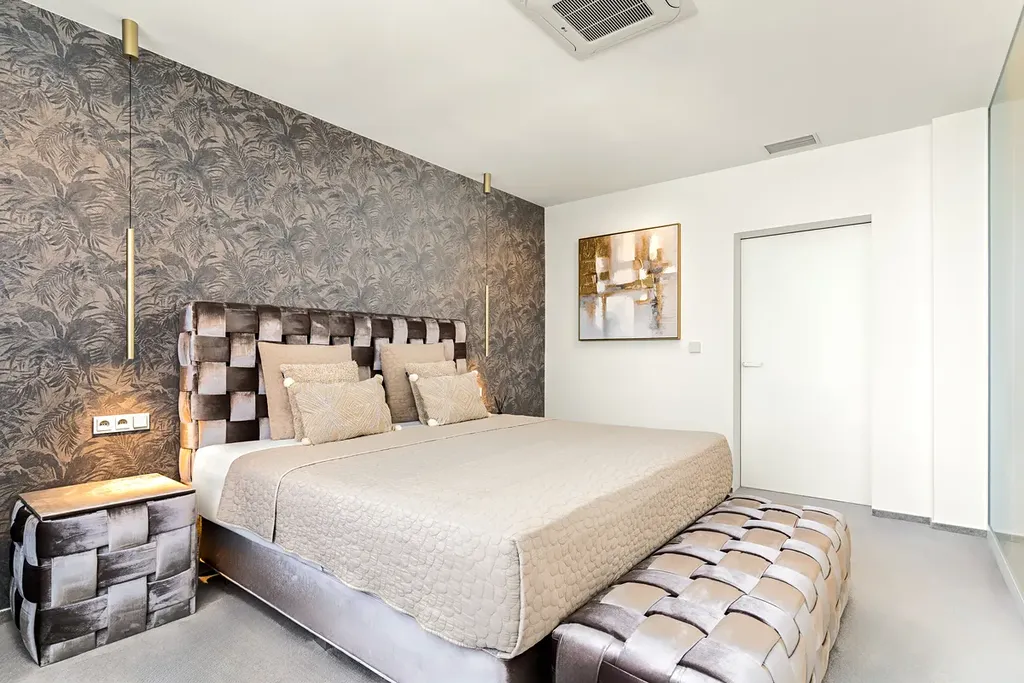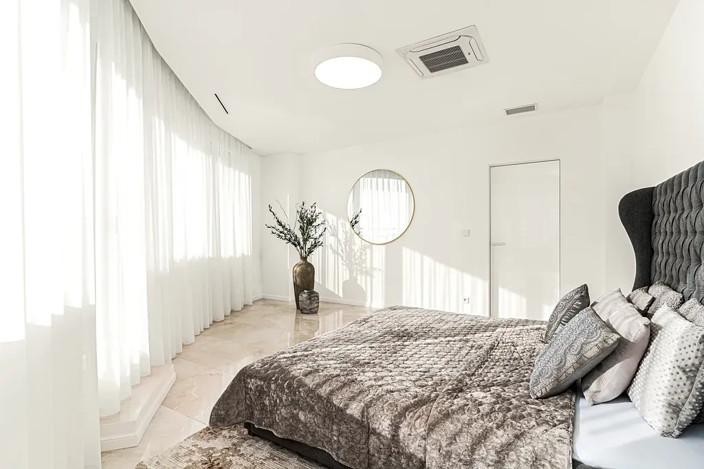 Hlavní ložnice je splněným snem každé ženy – od královsky pohodlné postele King Koil s kvalitní matrací, přes vlastní šatnu, až po soukromou koupelnu navrženou speciálně pro dámy včetně prostoru pro líčení.