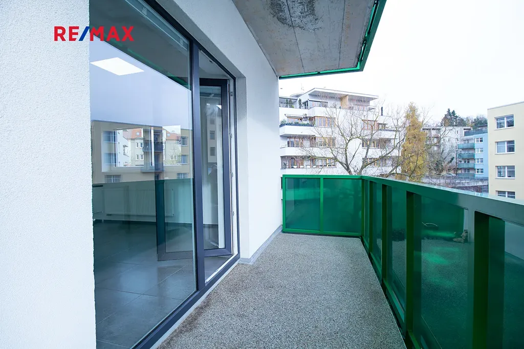 Byt se nachází v 2. patře (3.NP) a nabízí pohodlné uspořádání pro jednotlivce, páry i rodiny. Najdete tu světlý obývací pokoj spojený s kuchyní a dvě neprůchozí ložnice. Kuchyňská linka je rohová, prostorná a vybavená sporákem, digestoří i mikrovlnnou troubou. Díky dvěma velkým vestavěným skříním (v chodbě a ložnici) máte o úložný prostor postaráno. Koupelna je moderní a prostorná, se sprchovým koutem a žebříkovým topením. Toaleta je samostatně. Byt má vlastní velký balkon (8,2 m²) – ideální na ranní kávu, večerní sklenku vína nebo malé domácí pěstování bylinek. Jednoduše místo, kde si vychutnáte svůj klid uprostřed města.
