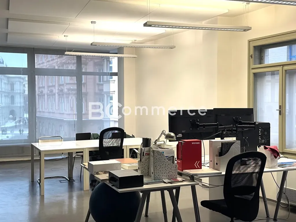 Jednotka se skládá z prostorné "open space" vstupní kanceláře, dále pak 2 prosklených samostatných kanceláří a další větší oddělené kanceláře v současné době sloužící jako jednací/školící místnost. Součástí jednotky je i vlastní kuchyňka s odpočinkovou zónou a WC (ženy/muži). Kanceláře jsou klimatizované, mají dva menší balkony a mají jedinečný výhled přímo na pěší zónu. Jednotka je vhodná jako reprezentativní kanceláře např. pro advokátní kancelář, architektonická kancelář nebo obecně pro nájemce, který ocení jedinečnost tohoto objektu.