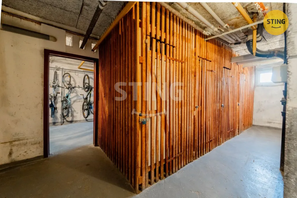 K bytu náleží sklepní kóje a sdílená kolárna a kočárkárna v přízemí domu.