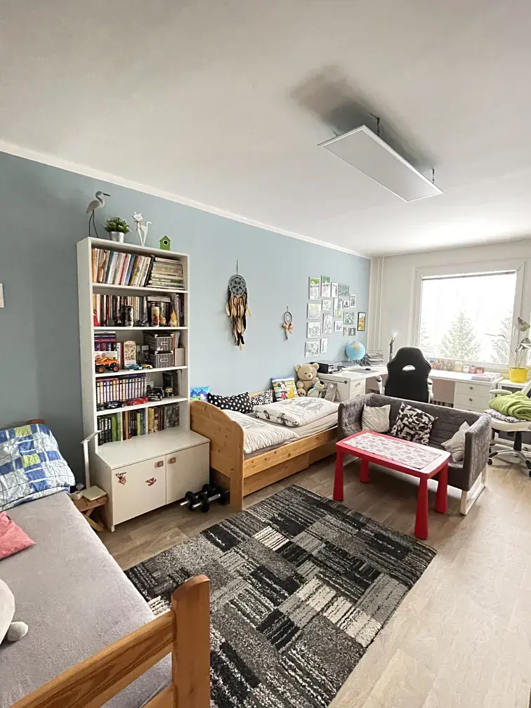 Byt 3+1 s lodžií ve čtvrtém nadzemním (resp. třetím obytném) podlaží panelového zatepleného pětipodlažního domu s výtahem, v ulici Vrchlického, v Týništi nad Orlicí. Byt je v osobním vlastnictví, v bytě chodba s komorou, koupelna s vanou, samostatné WC, kuchyň, ložnice, dětský pokoj a obývací pokoj a výstupem na lodžii. Celková užitná plocha bytu cca 75 m2, obytná plocha bytu činí cca 70,4 m2 + lodžie 2,5 m2 a sklepní plechová koje 2 m2 v I. NP domu. Dům je po celkové revitalizaci, provedeno zateplení, plastová stoupací potrubí, nová střešní krytina, novější bezbarierové výtahy. Vytápění a ohřev teplé užitkové vody řešen z centrální kotelny. Byt je bez jakýchkoliv zástavních práv či jiných právních omezení, volný po dohodě. Bytový dům se nachází v okrajové klidné části města, v ulici Vrchlického, v případě zájmu lze pronajmout městskou zahrádku v blízkosti domu. Centrum města cca 1,4 km, zastávka místní dopravy cca 350 m, vlakové nádraží cca 700 m, silnice I. tř. na Hradec Králové cca 800 m. Energetická třída D. S případným financováním rádi pomůžeme.