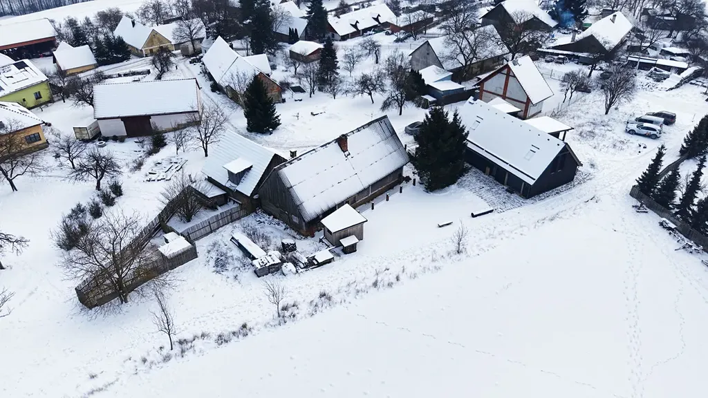 Dům stojí v klidné části obklopené loukami a přírodou, ideální pro ty, kteří hledají poklidné bydlení mimo ruch měst, přitom s dobrou dostupností autem: