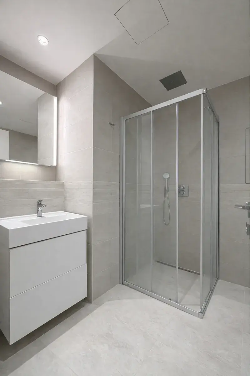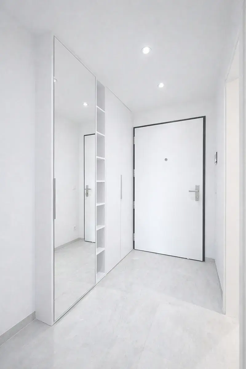 Nadčasová kombinace barev, materiálů a technického provedení vás bude těšit po celou dobu nájmu - namátkou uvedu nadstandardní obklady a sanita, na míru vytvořená, plně vybavená kuchyňská linka, nebo inteligentní osvětlení Philips HUE. Samozřejmostí jsou vestavné skříně v předsíni, dálkově ovládané předokenní žaluzie, solární fólie na oknech, nebo automatická rekuperace vzduchu.