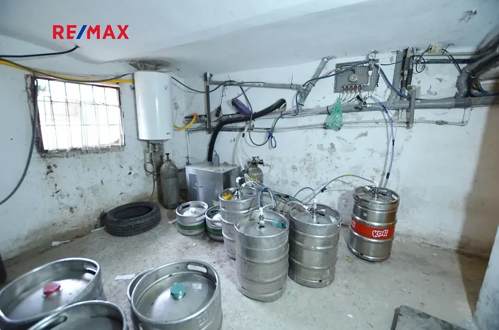Objekt je částečně podkslepený (45m²), sklep je využíván pro restauraci jako sklad a zázemí pro výčep (sudy, chlazení, atd.). Vytápění objektu zajišťuje plynový kotel, součástí prostor je klimatizace.