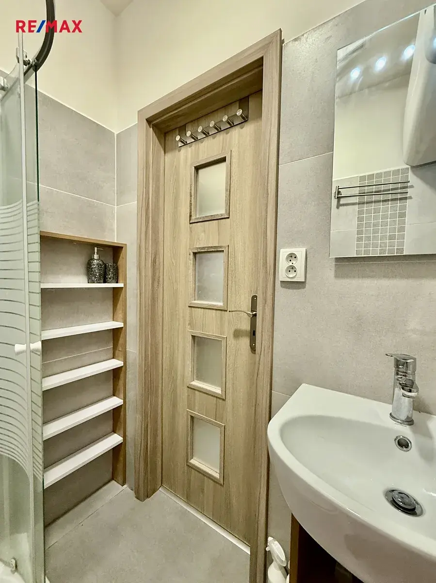 Vstup do bytu je ze společné vstupní chodby, která slouží pouze pro dva byty, což zajišťuje větší klid a soukromí.