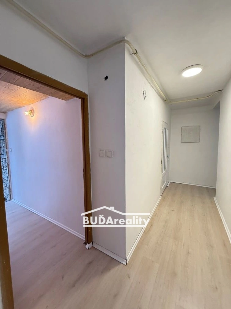 Prostornější bytová jednotka o dispozici 3+1 prošla celkovou rekonstrukcí kromě koupelny a wc. Do této části domu se vstupuje vstupuje z hlavní ulice. Za vstupem se hned nachází velkolepá kuchyň s obývacím pokojem. Zde si můžete přitopit i krbovými kamny. Ve všech místnostech leží na podlaze nová plovoucí podlaha. K dokonalosti chybí pouze kuchyňská linka, kterou si můžete udělat k obrazu svému. Další dominantou a obrovským prostorem působí koupelna, která byla zrekonstruována před 15 lety. K dispozici tu je rohová vana, vanička sprchového koutu a umyvadlo. Dále tu je plynový kotel a bojler na ohřívání vody. Samostatné wc se nachází před vstupem do prostorné koupelny. Po schodišti se dostanete do horní části domu, kde se prostorná 2 průchozí pokoje. V jednom z nich je menší podkrovní místnost, která by mohla po úpravách sloužit i jako šatna. V patře se nachází kromě chodby další 2 menší podkrovní místnosti, které po úpravách mohou sloužit jakou koupelna nebo šatna.