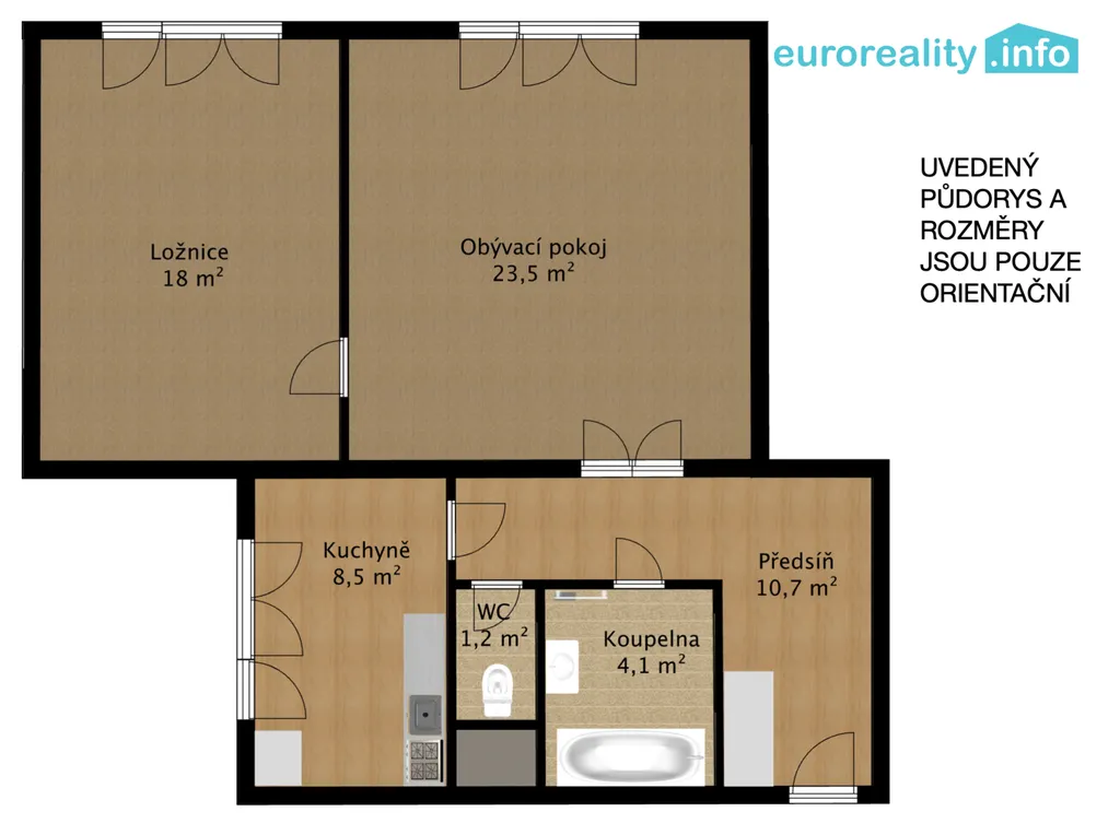 Dispozici tvoří dva velké pokoje, samostatná kuchyně, koupelna, toaleta a prostorná chodba s dostatkem místa pro úložné prostory. Byt je vybaven plynovým kotlem, který zajišťuje jak vytápění, tak ohřev teplé vody.
