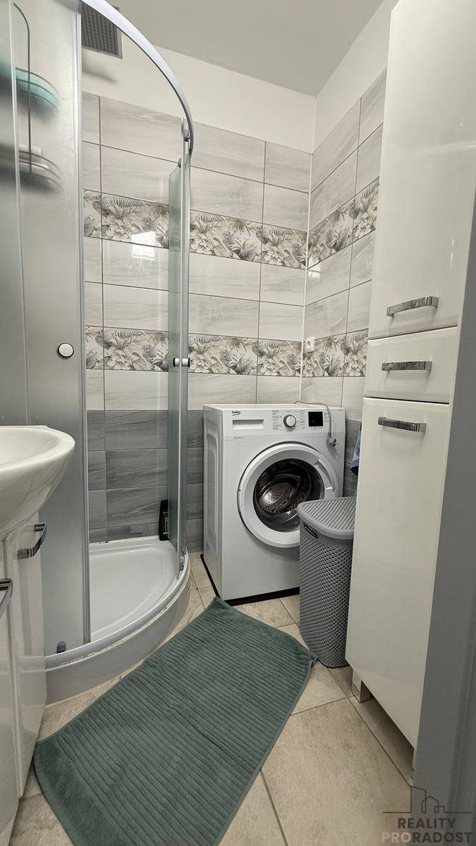 Součástí vybavení je moderní kuchyňská linka s el. troubou a s varnou deskou a pračkou v koupelně.. Byt je světlý, útulný a připravený k okamžitému nastěhování.