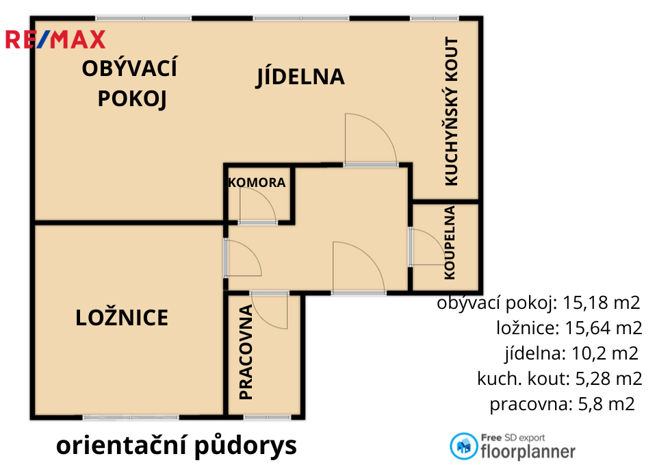 Dispozice bytu nabízí dostatek úložných prostor – vestavěná skříň v chodbě, samostatná šatna / komora, dále komoru na patře a sklepní kóji.