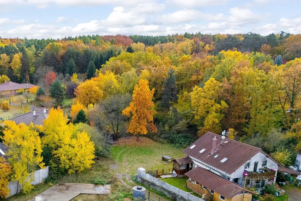 Celková plocha nabízí dostatek prostoru, soukromí i příjemné přírodní zázemí. Část pozemku je porostlá vzrostlou zelení, která vytváří klidnou atmosféru a přirozené oddělení od okolní zástavby.