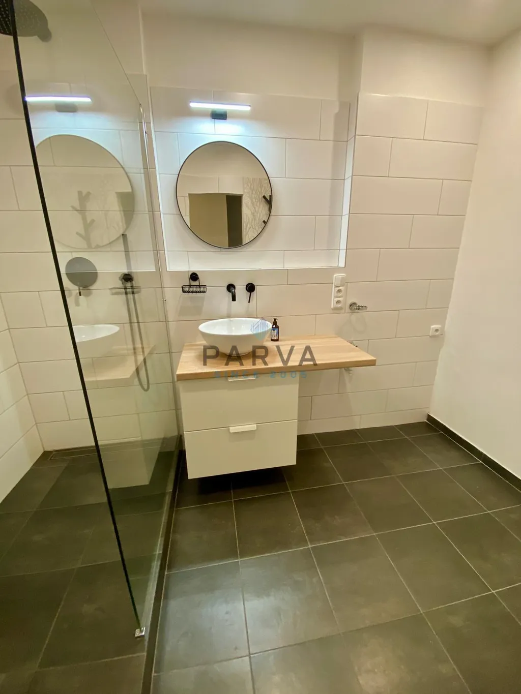 • velmi prostorná koupelna se sprchovým koutem pro dva + místo na pračku i sušičku