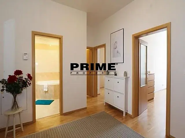 Na podlaze jsou dřevěné podlahy a dlažba. K dispozici je pračka se sušičkou, TV, internetové a satelitní připojení. Možnost pronájmu parkovacího stání v blízkosti domu za extra poplatek 2.000 Kč + DPH za stání za měsíc.