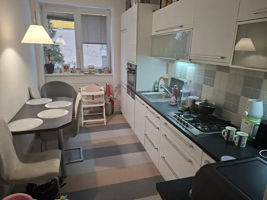 CP bytu je 60 m2 . K bytu patří lodžie a sklep. Okna jsou plastová, pokoje mají samostatné vstupy. Na podlaze jsou parkety, koberec a dlažba. V kuchyni je umístěna moderní kuchyňská linka s vestavěnými spotřebiči /plynová deska, myčka, trouba, lednice s mrazákem/. Koupelna a toaleta jsou samostatné. Koupelna je opatřena sprchovým koutem, umyvadlem s skříňkou a elektrickým žebříkem a je zde místo na umístění pračky. V předsíni je vestavěná skříň a menší komora.