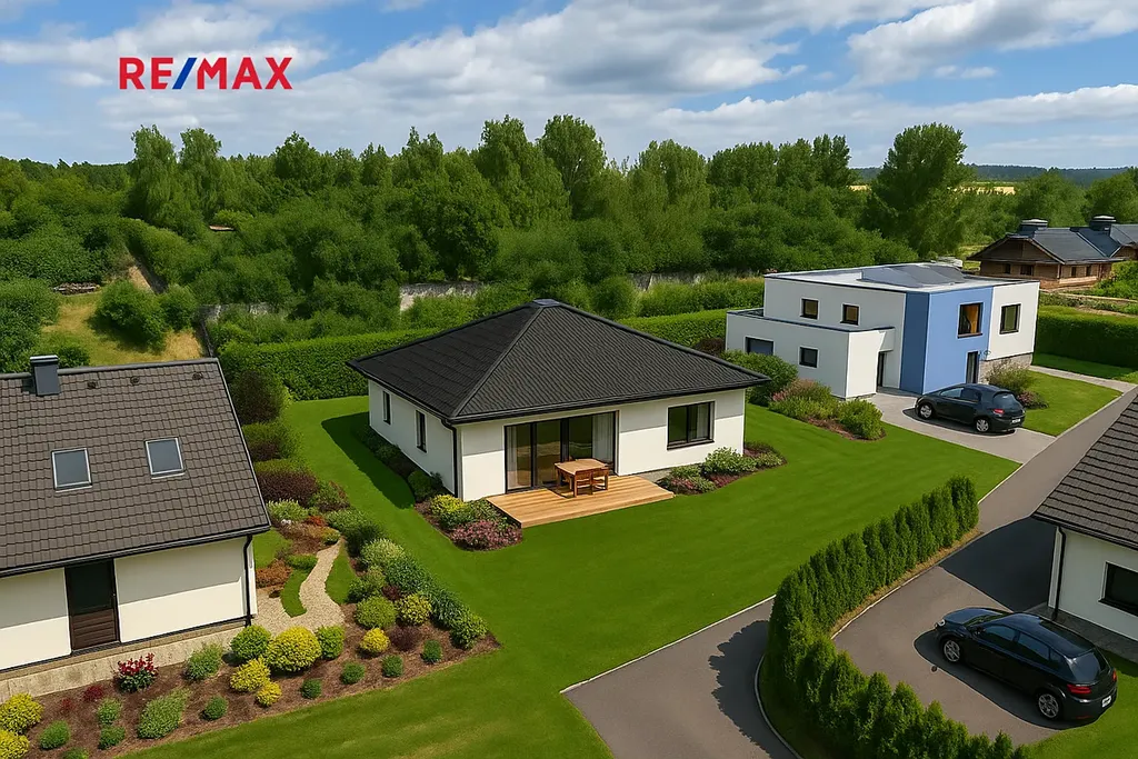 Cena pozemku zahrnuje kompletní projektovou dokumentaci na výstavbu bungalovu 4+kk a vydané stavební povolení, což výrazně urychlí a zjednoduší zahájení výstavby.