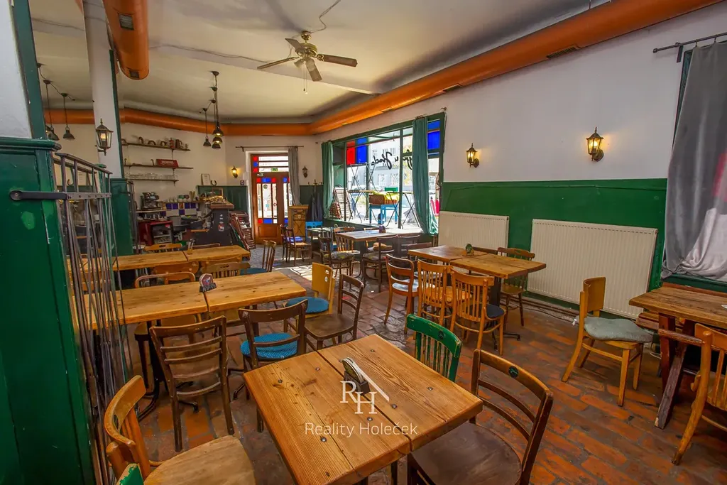 Přímo z ulice vstoupíte do hospůdky Caffé u Hada, která má následujícími prostory: 46m2 k sezení + při hezkém počasí je možnost posezení venku, přípravna 10 m2, šatna pro personál 4,5m2, toalety 7,7m2 a sklep 9m2. Vytápění zajišťuje jeden rok starý kondenzační kotel. Provoz zařízení je i se zahrádkou zcela bezproblémový ke svému okolí.