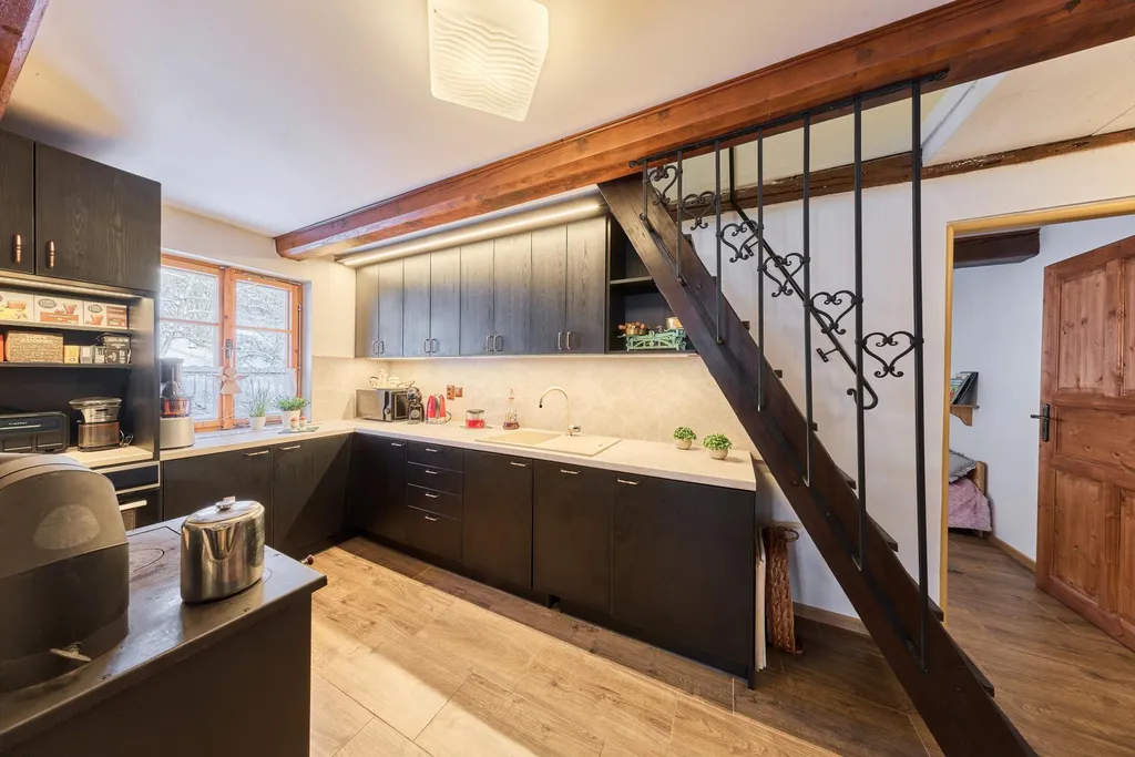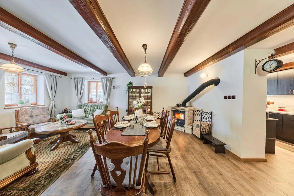 Dispozice chalupy: prosklená prostorná veranda, kam svítí přes den slunce a můžete se ohřívat po koupeli ve vířivce, která zde má své místo, dále vstupní hala s příjemným posezením odkud vcházíte do obytné místnosti propojené s kuchyní, a kde jsou umístěna krbová kamna s rozvodem do celého objektu. Uvítáte s nadšením moderní kuchyňskou linku se zajímavě propojenými krbovými kamny na vaření. Z kuchyně vejdete do ložnice. Z haly vcházíte do koupelny se sprchovým koutem, je zde samostatné WC, další místnost může být označena jako technická místnost, kde jsou litinová kamna pro ohřev v zadní části chalupy a elektrický bojler, úložiště pro sekačku atd.