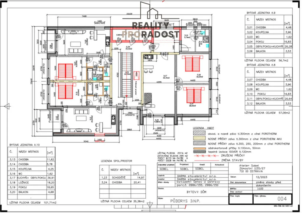3NP - Byty ( jsou dva byty 2kk a jeden 3kk - všechny byty s balkóny )