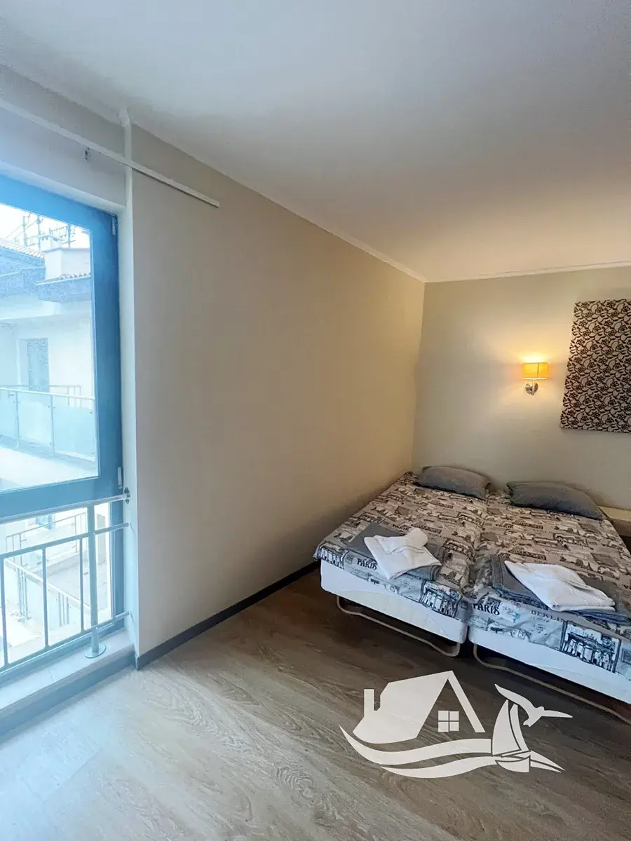 Jsou místa, kde se moře stává součástí každého dne. Kde ráno otevíráte dveře na terasu a první, co vidíte, je modrý horizont, klidná hladina a světlo, které dává prostoru zvláštní lehkost. Právě takový pocit nabízí tento prostorný dvoupokojový apartmán v první linii u moře v příjemném a klidném městě Byala.