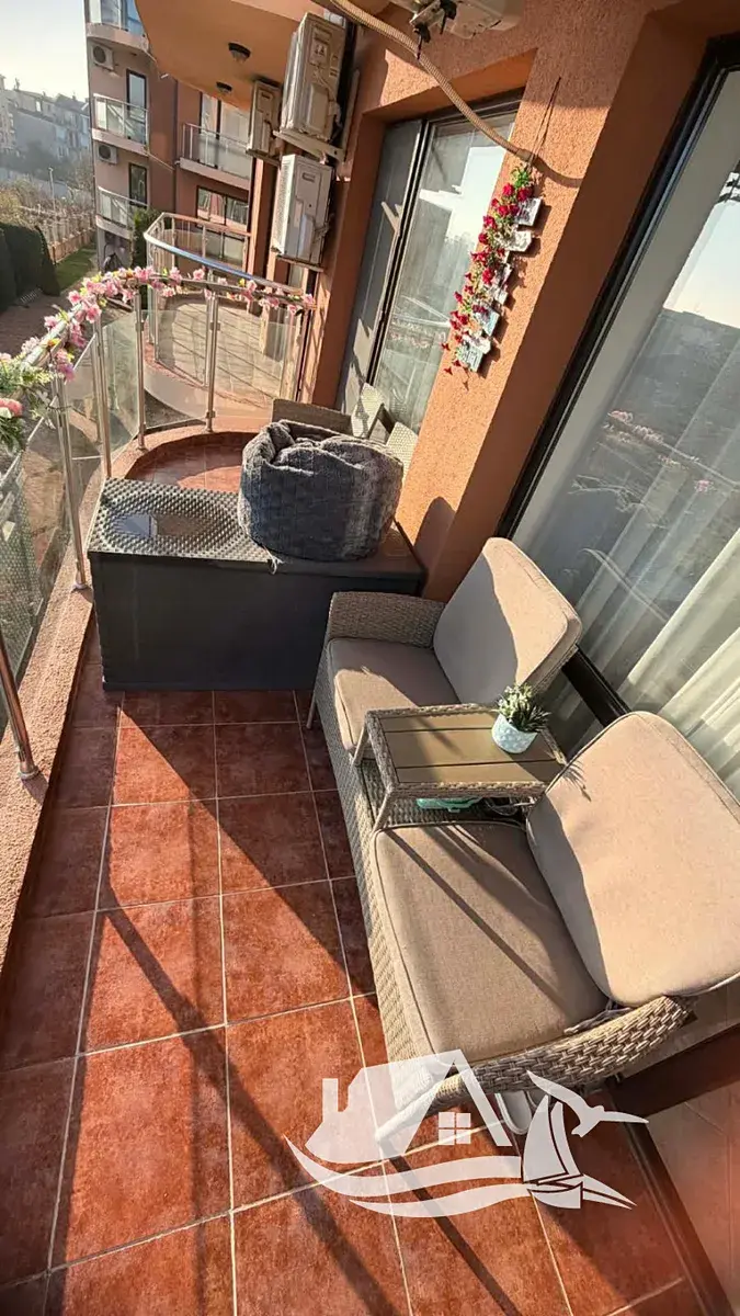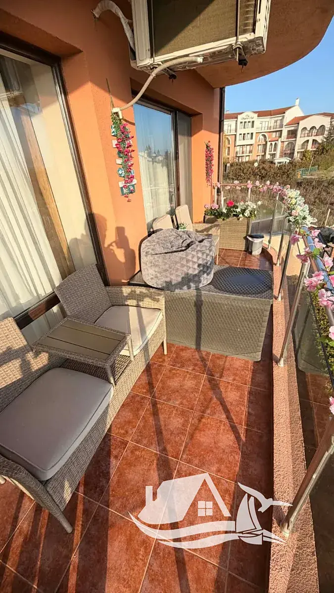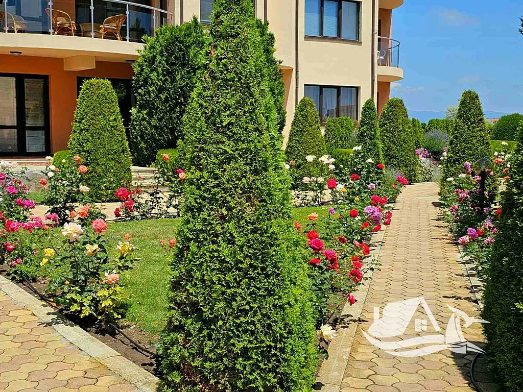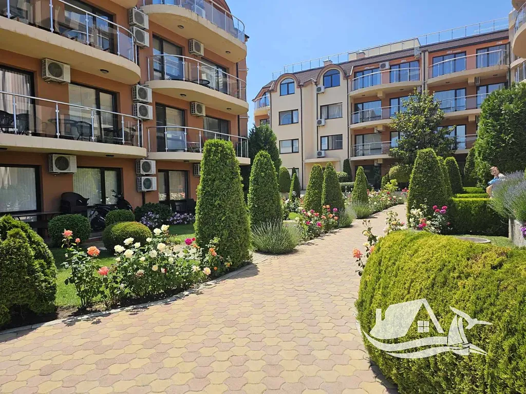 Apartmán se nachází ve druhém patře domu s výtahem v pečlivě udržovaném rezidenčním komplexu Sun Sea Resort. Už při příchodu působí harmonicky, vzdušně a velmi útulně. Východní orientace zajišťuje dostatek přirozeného světla po celý den a vytváří příjemnou atmosféru pro každodenní život i odpočinek.