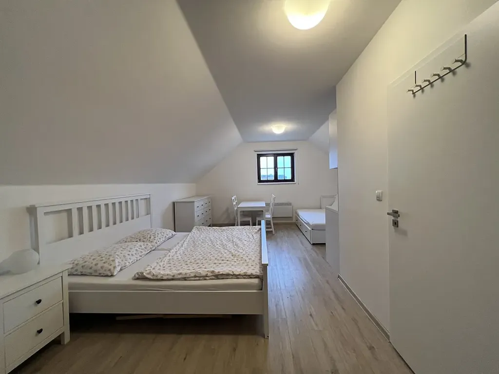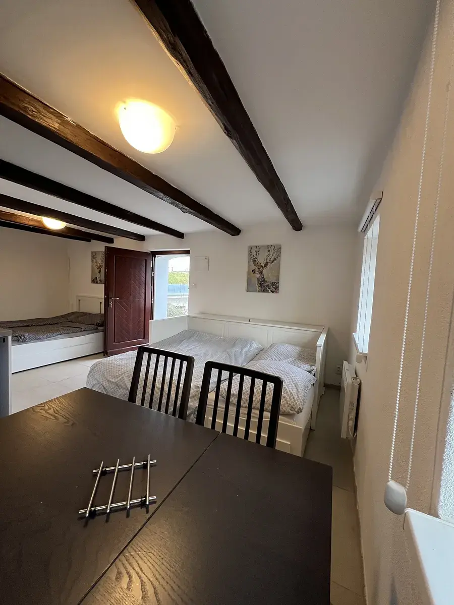 Exkluzivně nabízíme k prodeji krásný vinný sklep se dvěma apartmány nacházející se v malebné vinařské obci Čejkovice. Tento vinný sklep s přístavbou obytné části je ideální pro milovníky vína i podnikatele hledající ubytování v atraktivní lokalitě Jižní Moravy. Po vstupu do sklepa se nachází místnost pro příjemné posezení s krbem a kuchyňkou pro přípravu občerstvení, vstupní chodbou se dostanete do kvelbeného vinného sklepa s ideální teplotou pro archivaci vína. Vytápění zajištuje klimatizace. V 1.NP a podkroví jsou dva samostatně přístupné komplet vybavené apartmány každý o výměře 32,8m2. Každý apartmán má koupelnu se sprchovým koutem včetně WC. Vytápění přímotopy. Kapacita ubytování je 8 lůžek. Za sklepem je terasa s posezením. Eurookna a dřevěné vstupní dveře.