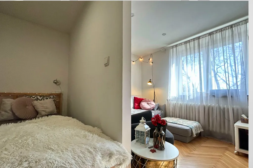 Na chodbě je možné využít společnou lodžii. Byt samotný se skládá z chodby, koupelny s toaletou, kuchyňského koutu s obývacím pokojem a ložnicí. Byt je po rekonstrukci a nabízí se zcela vybaven. Budova není vybavena výtahem.