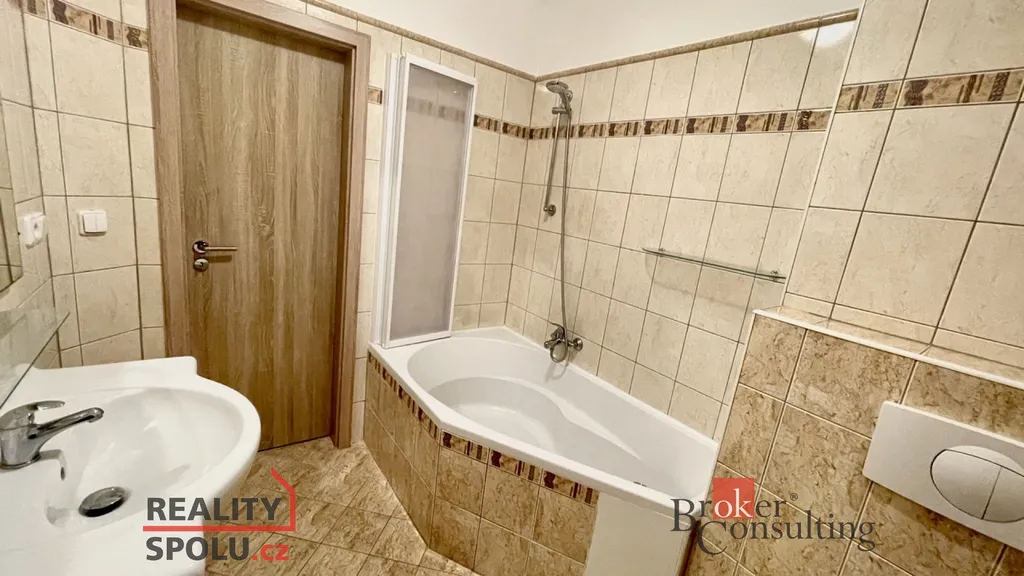 Byt je členěn na zádveří, ze kterého se vstupuje do koupelny a do obývacího pokoje s kuchyňským koutem. Z obývacího pokoje vedou schody do patra, kde nalezneme velkou šatní skříň a dva samostatné pokoje. Součástí jednoho z pokojů je praktické vyvýšené spaní s novými matracemi.
