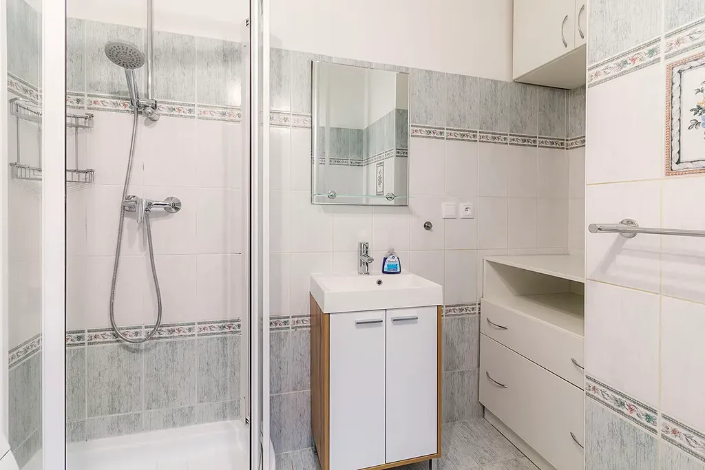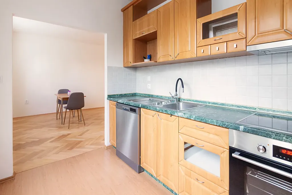 Byt prošel letos rekonstrukcí. V kuchyni nové spotřebiče: sklokeramická deska, vestavěná el. trouba, myčka a lednice. V koupelně pračka. WC je zvlášť. Komora v bytě.