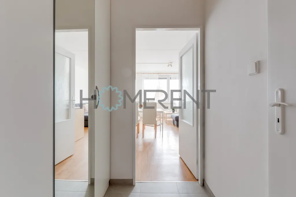 Součástí bytu je koupelna se sprchovým koutem, toaletou a pračkou. Byt je kompletně zařízený a připravený k okamžitému nastěhování, ideální pro pohodlné a bezstarostné bydlení.