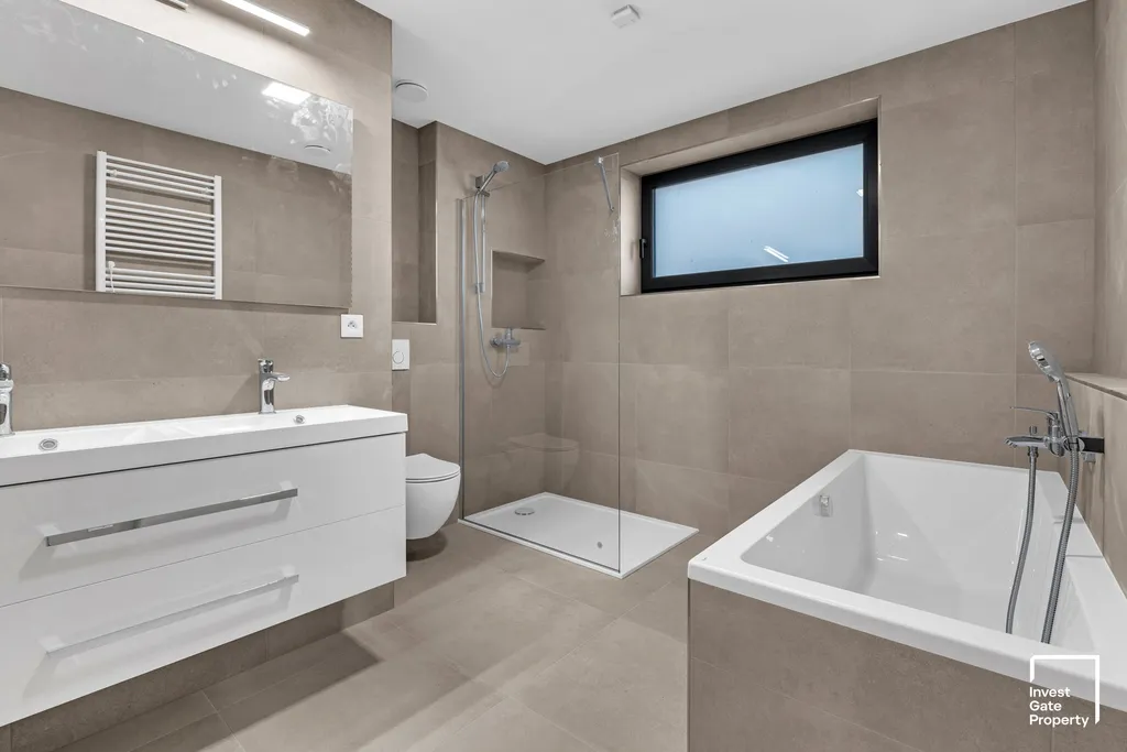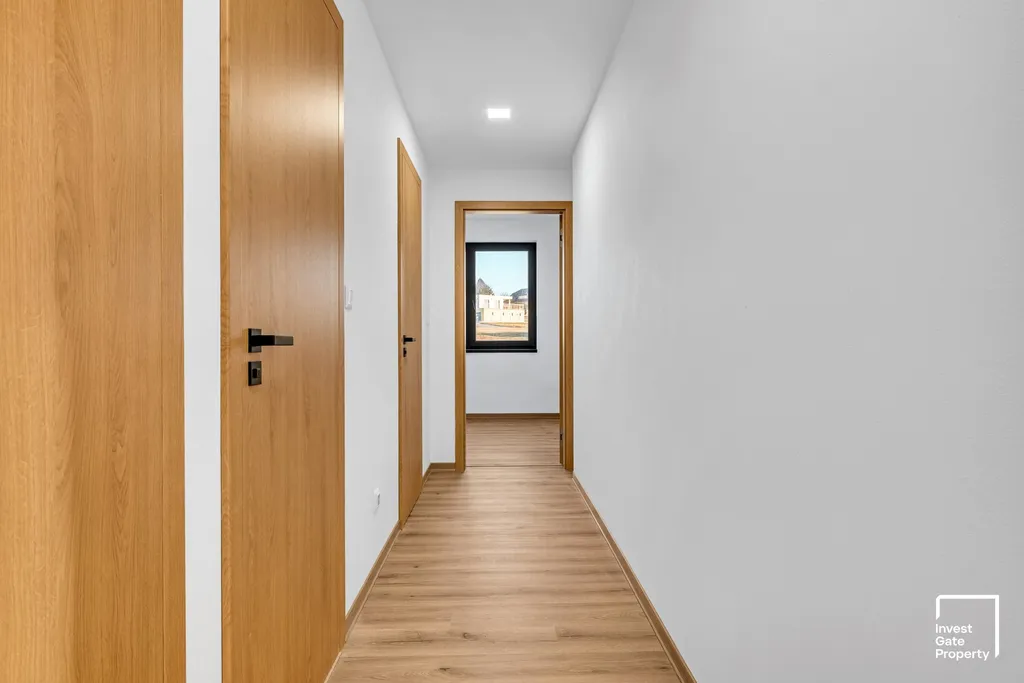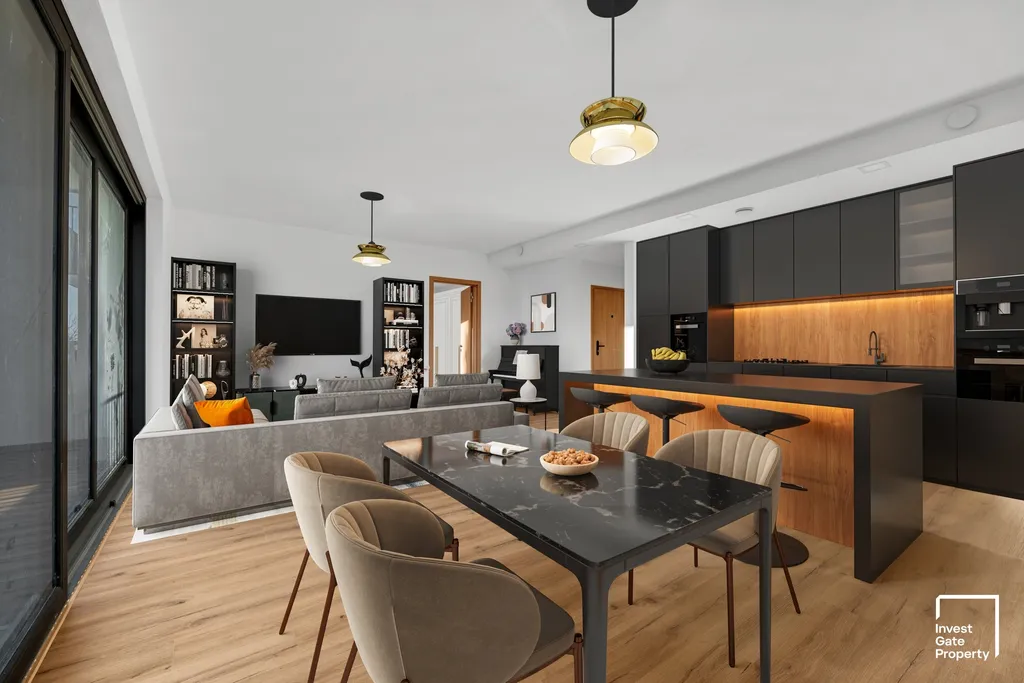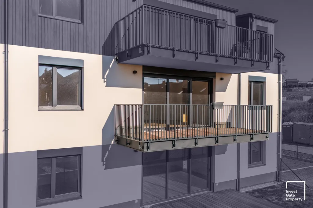 Byt má dispozici 4+kk o celkové ploše 124m2 a nachází se v 1. patře bytového domu. Bytu dominuje prostorný obývací pokoj s kuchyňským koutem, ze kterého je přímý vstup na balkon o výměře 13m2. K bytu dále patří komora o výměře 9m2 na stejném podlaží jako je byt. V ceně bytu získáte dále 2 parkovací místa před domem a zahradu o výměře cca 100m2.