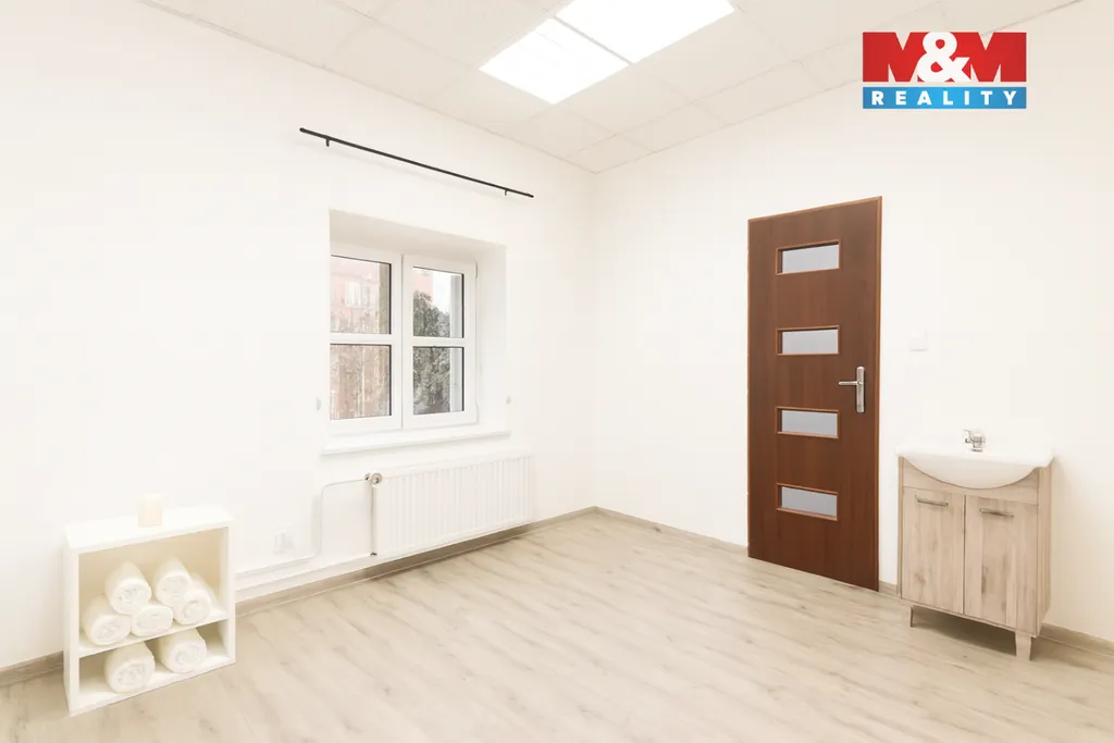 K pronájmu máme připravený zajímavý prostor ve 2. NP na klidném místě ul. Raisova, Mariánské Hory. Celková výměra 30 m², s rozdělením na 2 místnosti, 2 x 12 m² a na sociální zázemí. Velkou výhodou je umývadlo umístěné v první místnosti. Sprchový kout a kuchyňský dřez je pak součástí zázemí. Pro případ požadavku hygieny na druhé WC, není problém, to je k dispozici na chodbě před vstupem do kanceláří. Po posledním nájemci ponechána plovoucí podlaha ve výborném stavu, a bílá výmalba s modrou tapetou. Lednička může také zůstat, nic moderního, ale je tam. Ideální pro všechny služby kde je potřeba mít alespoň v jedné místnosti přívod vody - masáže relaxační i zdravotní, rehabilitace, manikúra, nebo jen pro nájemce s preferencí klidového pracoviště. Prostor je kolaudován jen na kancelářský. Stravování ob dvě ulice vedle, nákupní centrum Futurum v dosahu, stejně jako MHD. Prohlídka s možnosti rezervace přímo na místě. Termíny prohlídek dle dohody, klíče od prostor u makléře. Doporučujeme.